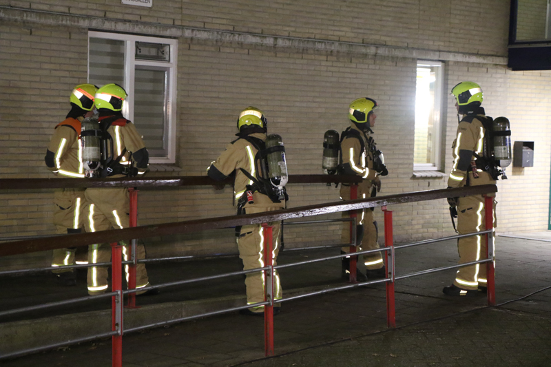 De brandweer schaalde ter plaatse op naar het sein ‘middelbrand’, deze opschaling is wegens de rook in het trappenhuis en dat het een seniorencomplex betrof. Na aankomst van de brandweer was de brand snel onder controle.