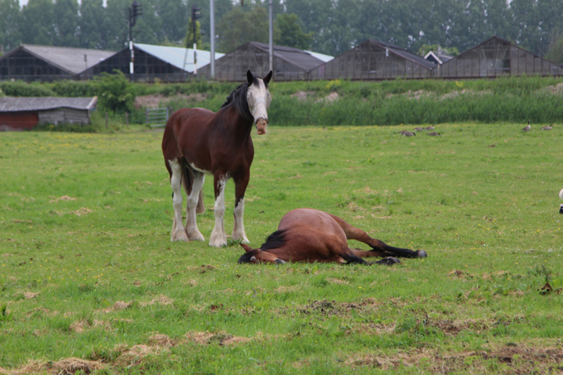 Schiedam – Een in slaap gevallen paard heeft maandagochtend voor enige ophef gezorgd op de Slimme Watering. Het dier lag vlak langs de weg en bewoog niet. Hiervan is een melding gemaakt bij 112 Na zeker 10 minuten bewoog het paard ineens een been. Enkele omstanders aarzelden geen moment, sprongen op de scooter op zoek naar het hek van het weiland en zijn het land opgegaan om het dier te laten staan. Na wat kort geroep stond het paard vanzelf op, en kwam een aai halen. Inmiddels waren de eigenaresse en de boer geïnformeerd. Zij hebben de verdere verzorging overgenomen.