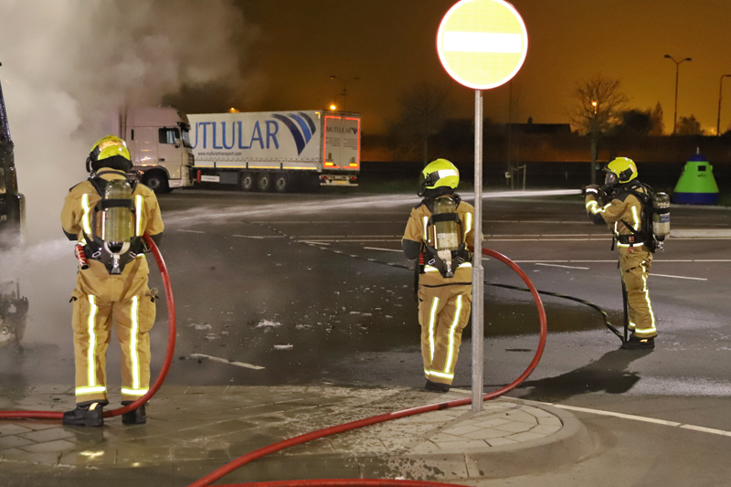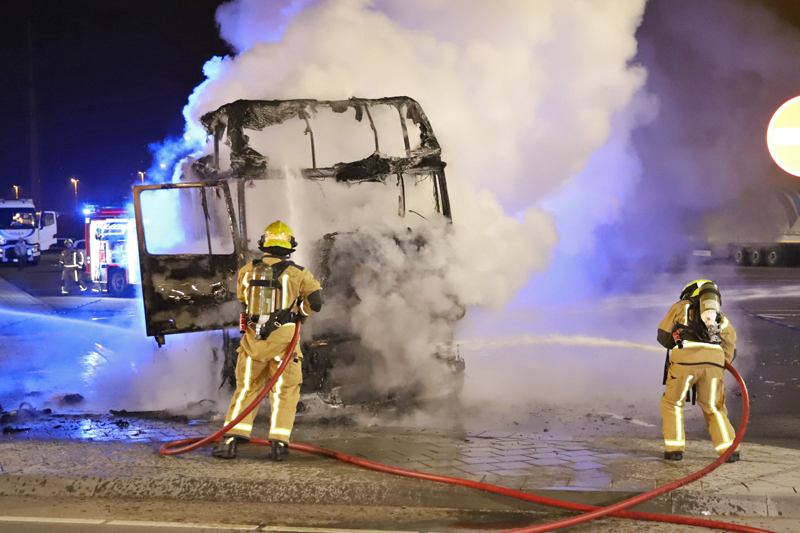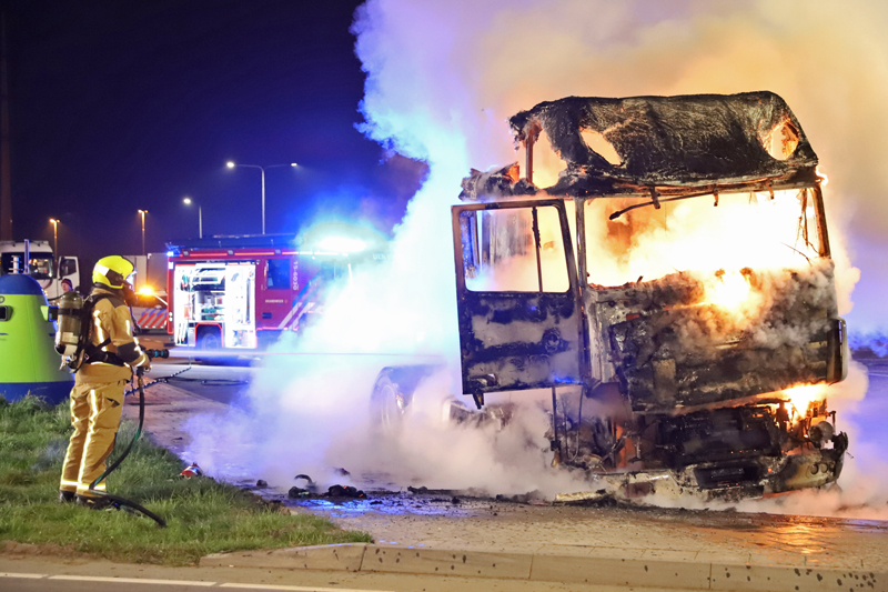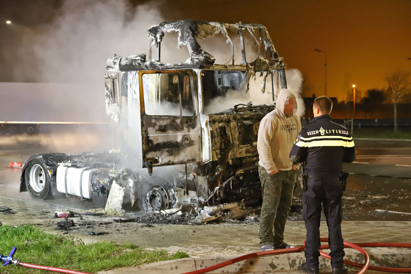 De bestuurder heeft met twee brandblussers nog gepoogd de brand onder controle te krijgen, echter zonder succes.