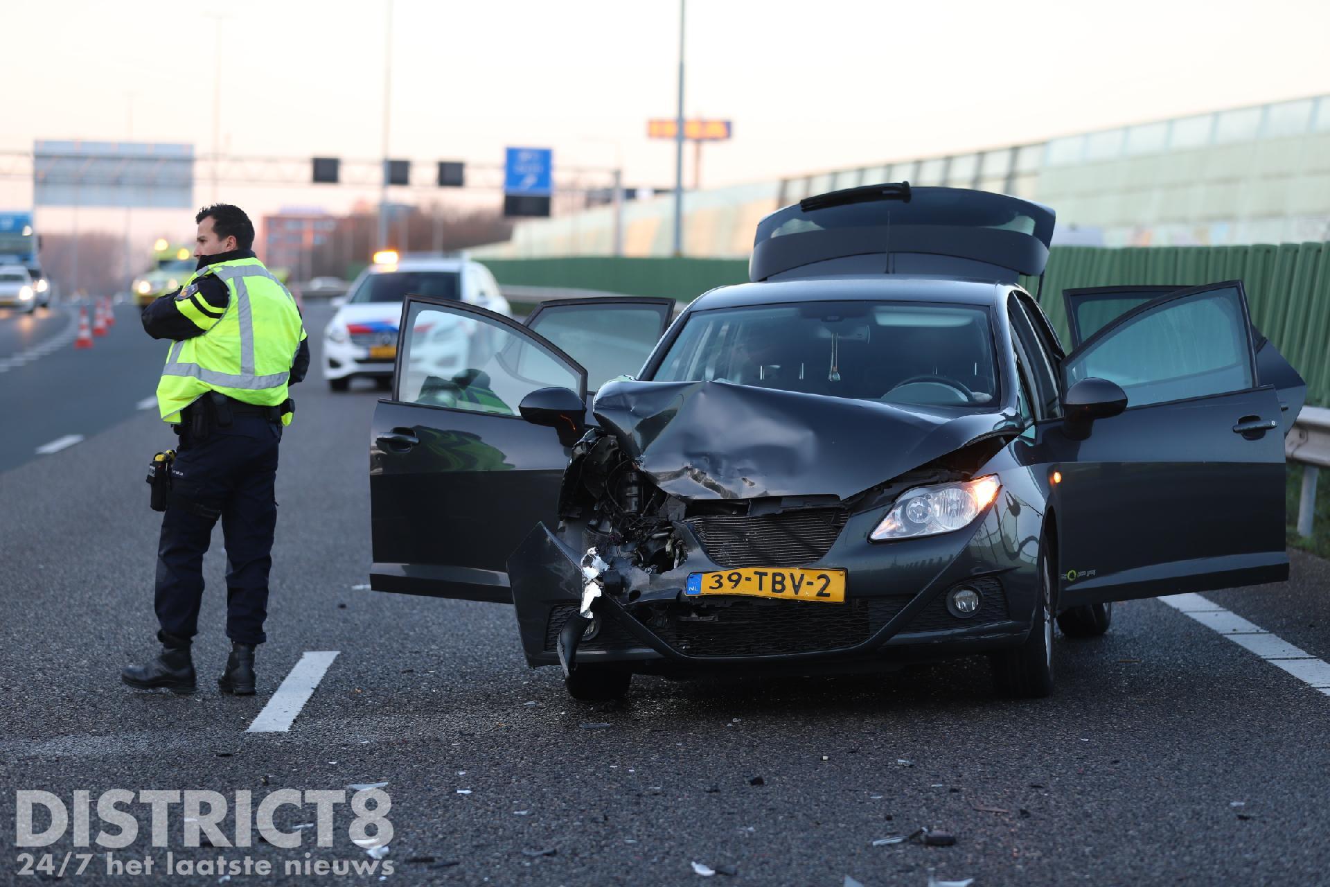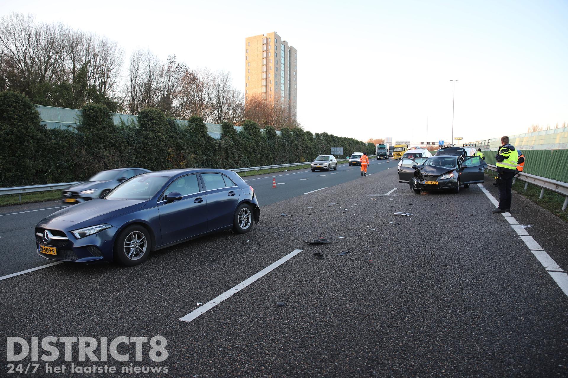 Delft – Vrijdagmiddag 1 december heeft er op de A13 bij Delft een aanrijding plaatsgevonden tussen twee auto’s. Volgens getuigen knalde de zwarte auto met hoge snelheid op de blauwe auto die stilstond in de file.