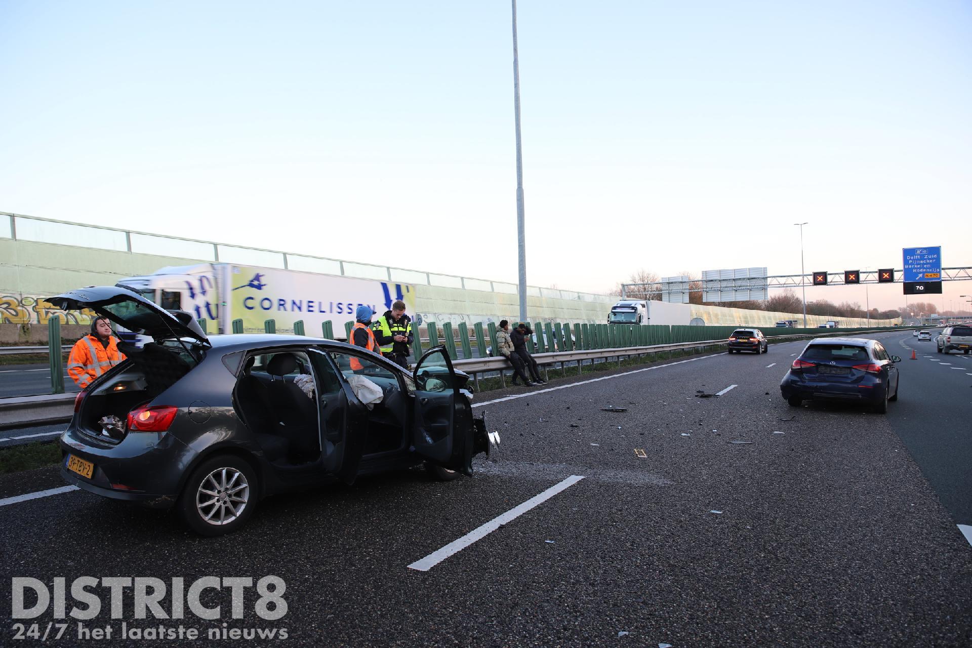 De politie en Rijkswaterstaat kwamen met spoed ter plaatse om de betrokkenen te helpen. Omdat de bestuurder van het achterste voertuig last had van zijn nek kwam ook een ambulance ter plaatse.