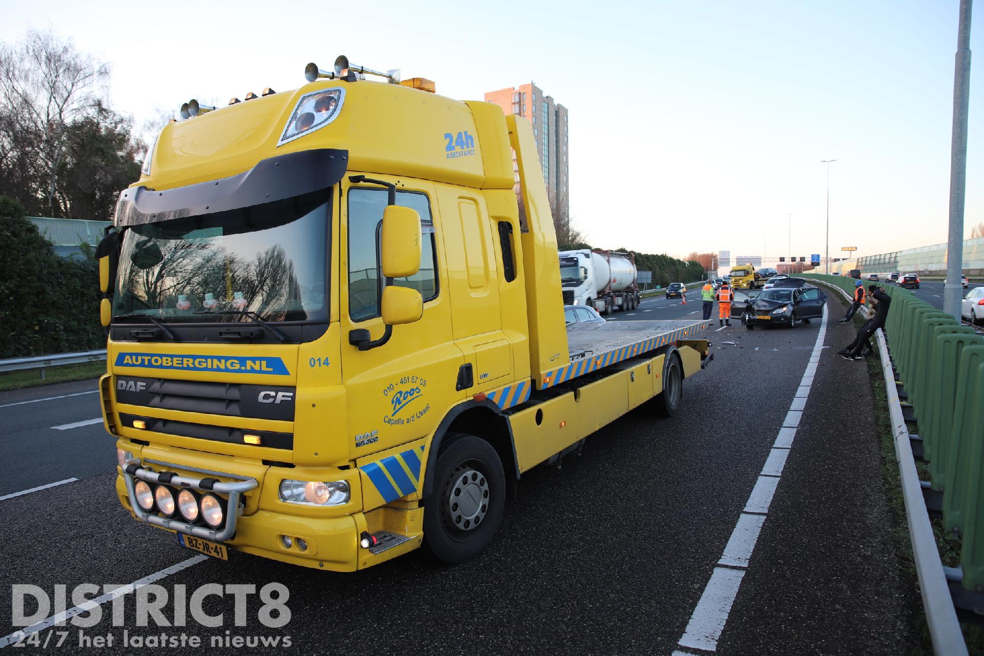 Door de aanrijding ontstond veel schade, omdat beide voertuigen over de rijstroken stonden werd de A13 richting Rotterdam direct volledig afgesloten.