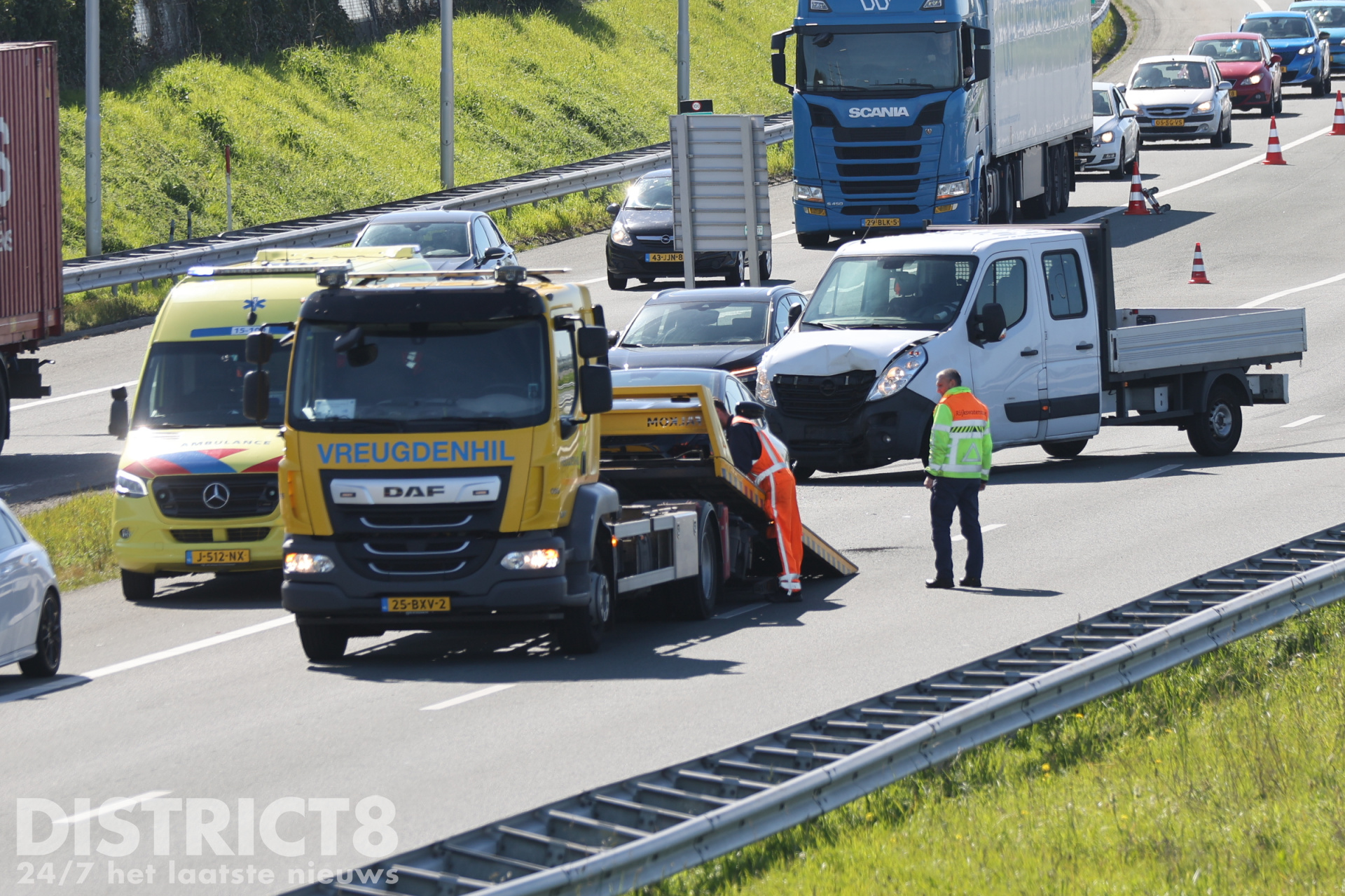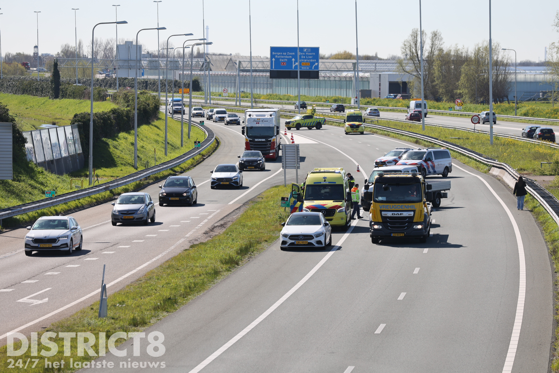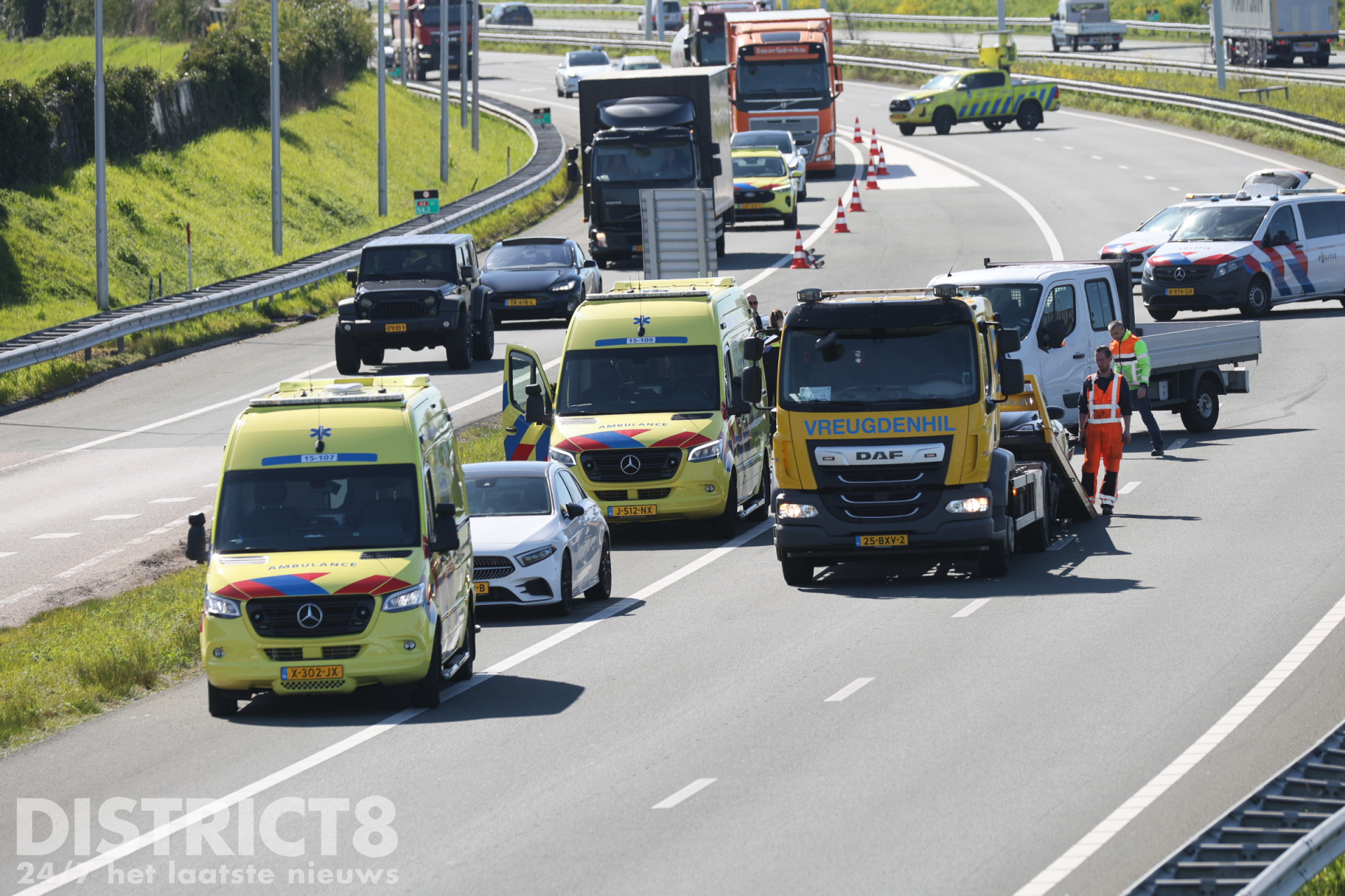 Het verkeer wordt bij Peulwijk van de snelweg geleid. Hulpdiensten zijn ter plaatse om het ongeval af te handelen. EƩn persoon is na het ongeval vervoerd. Een tweede persoon bevindt zich in een andere ambulance.