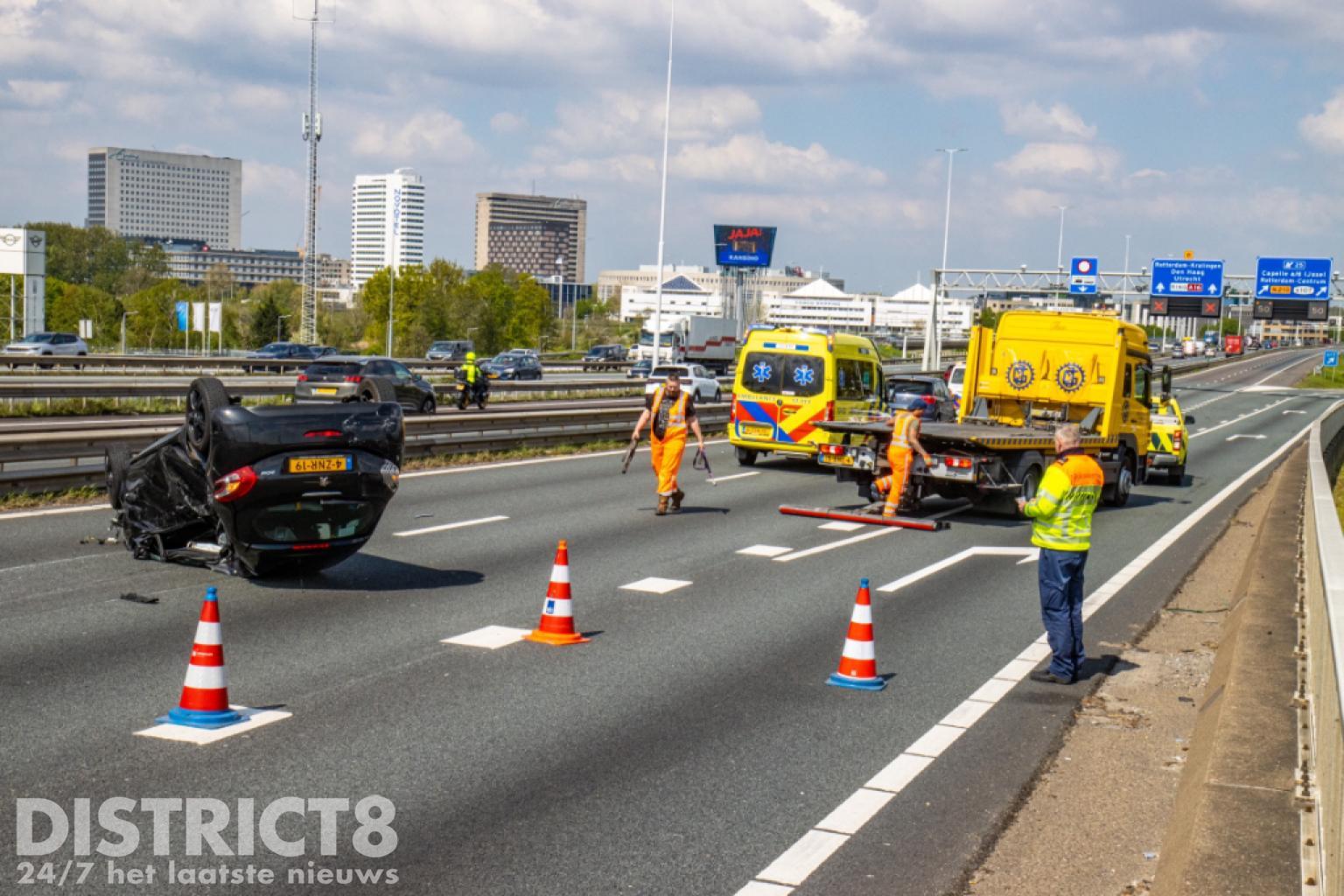 Rotterdam – Vrijdagmiddag heeft een ongeval plaatsgevonden op de A16 in Rotterdam. Het ongeval gebeurde net voorbij de Brienenoordbrug. Een auto was over de kop geslagen na een aanrijding. De auto heeft forse schade opgelopen. In elk geval een persoon was gewond geraakt. Voor het slachtoffer werd een traumahelikopter opgeroepen. Brandweerlieden hebben geholpen bij het incident.