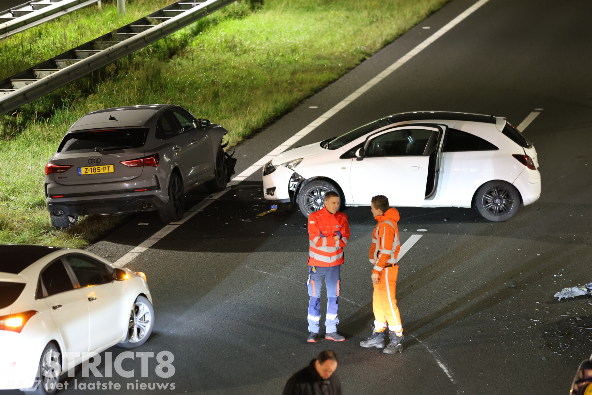 Politie, ambulance en Rijkswaterstaat kwamen met spoed ter plaatse. De betrokken voertuigen liepen schade op.