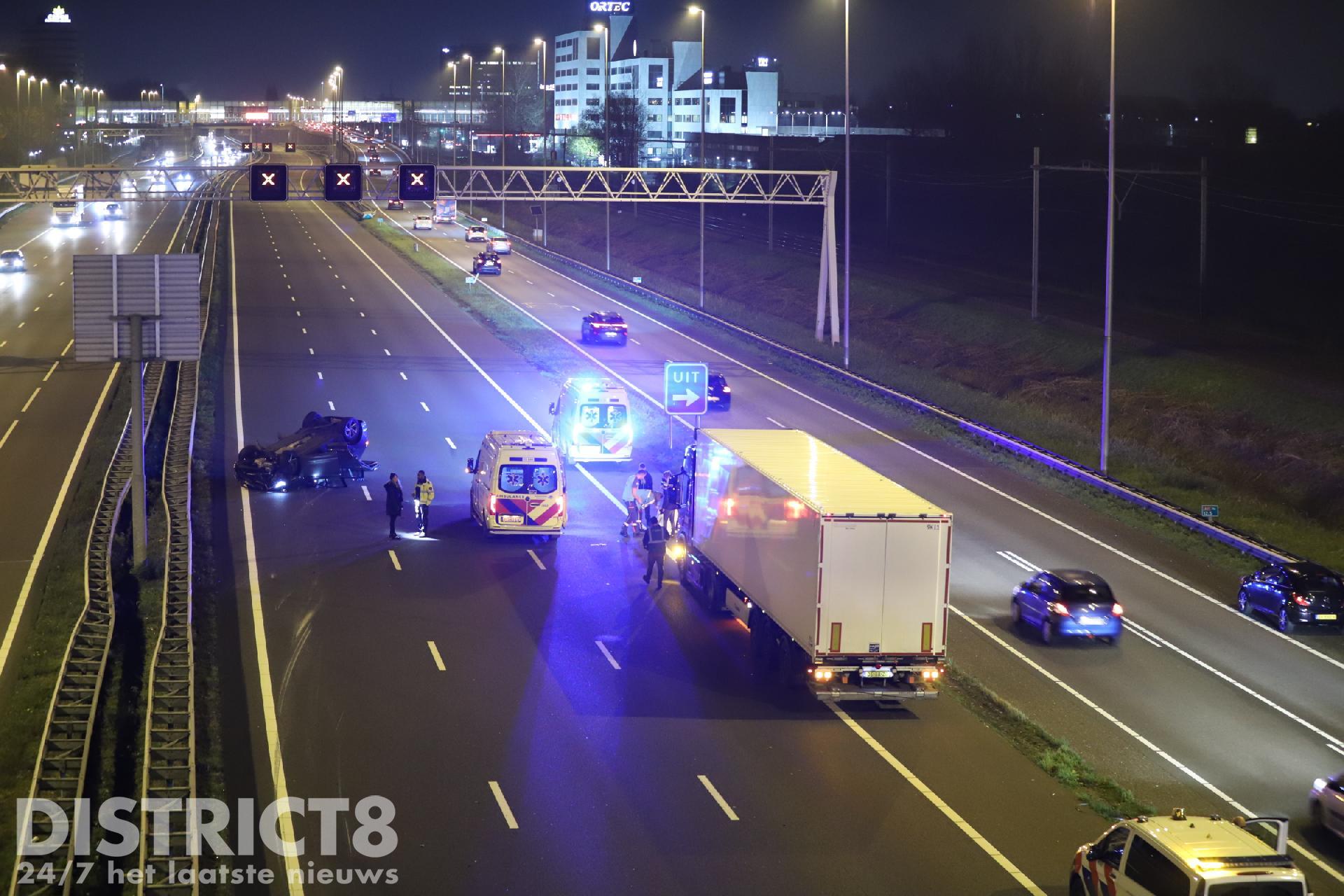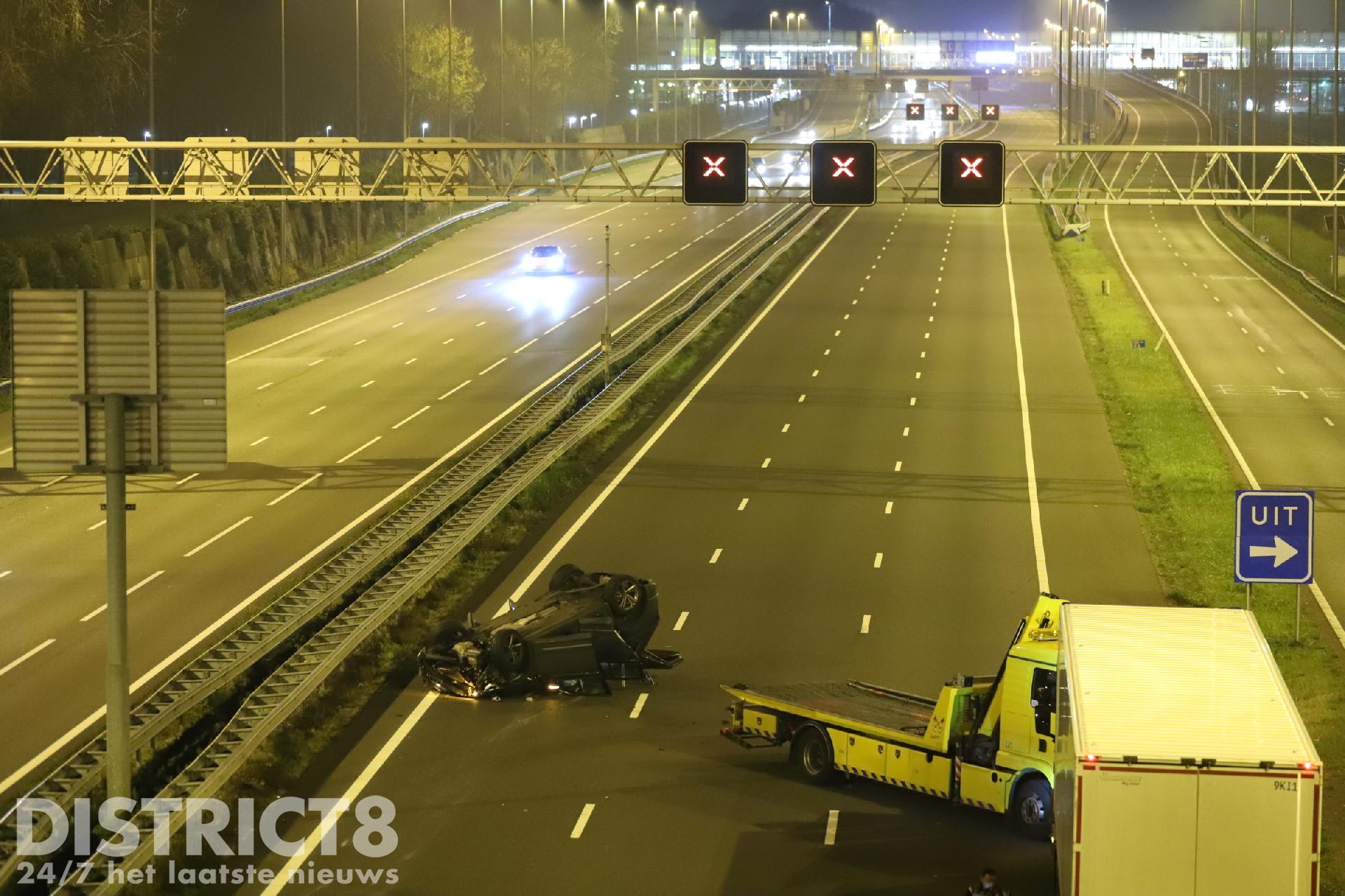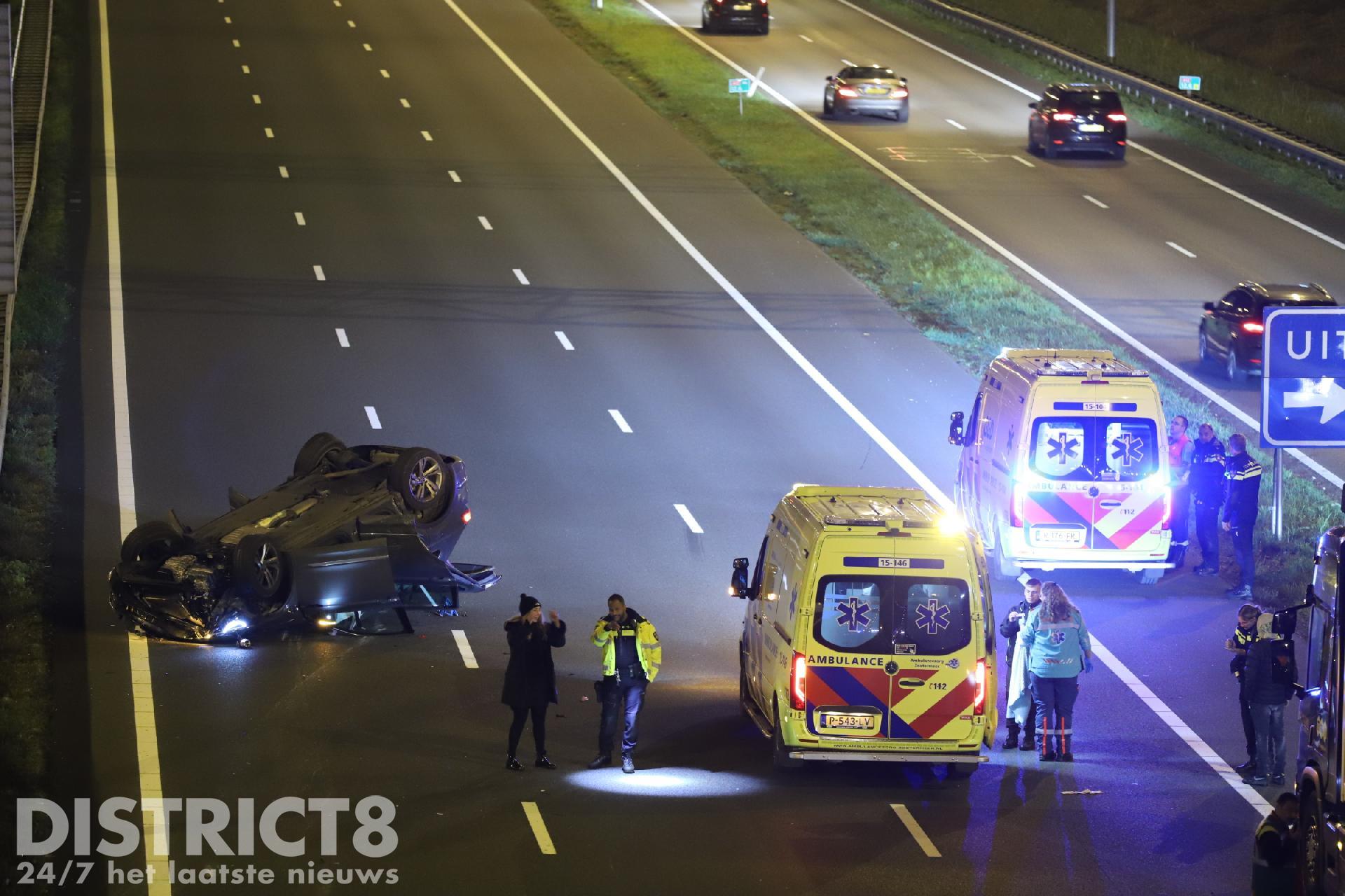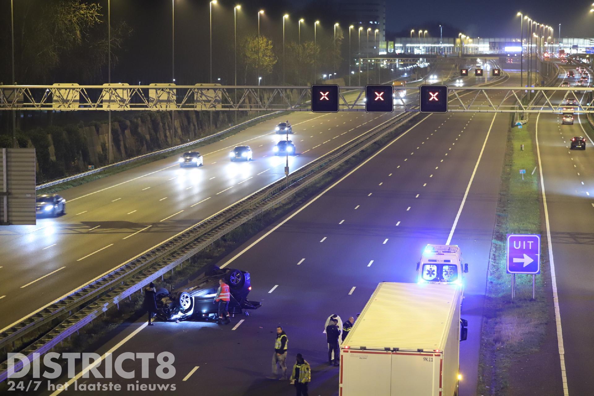 Zoetermeer – De A12 in de richting van Utrecht is woensdagavond 1 december volledig afgesloten geweest nadat bij Zoetermeer een auto op z’n dak terecht was gekomen.