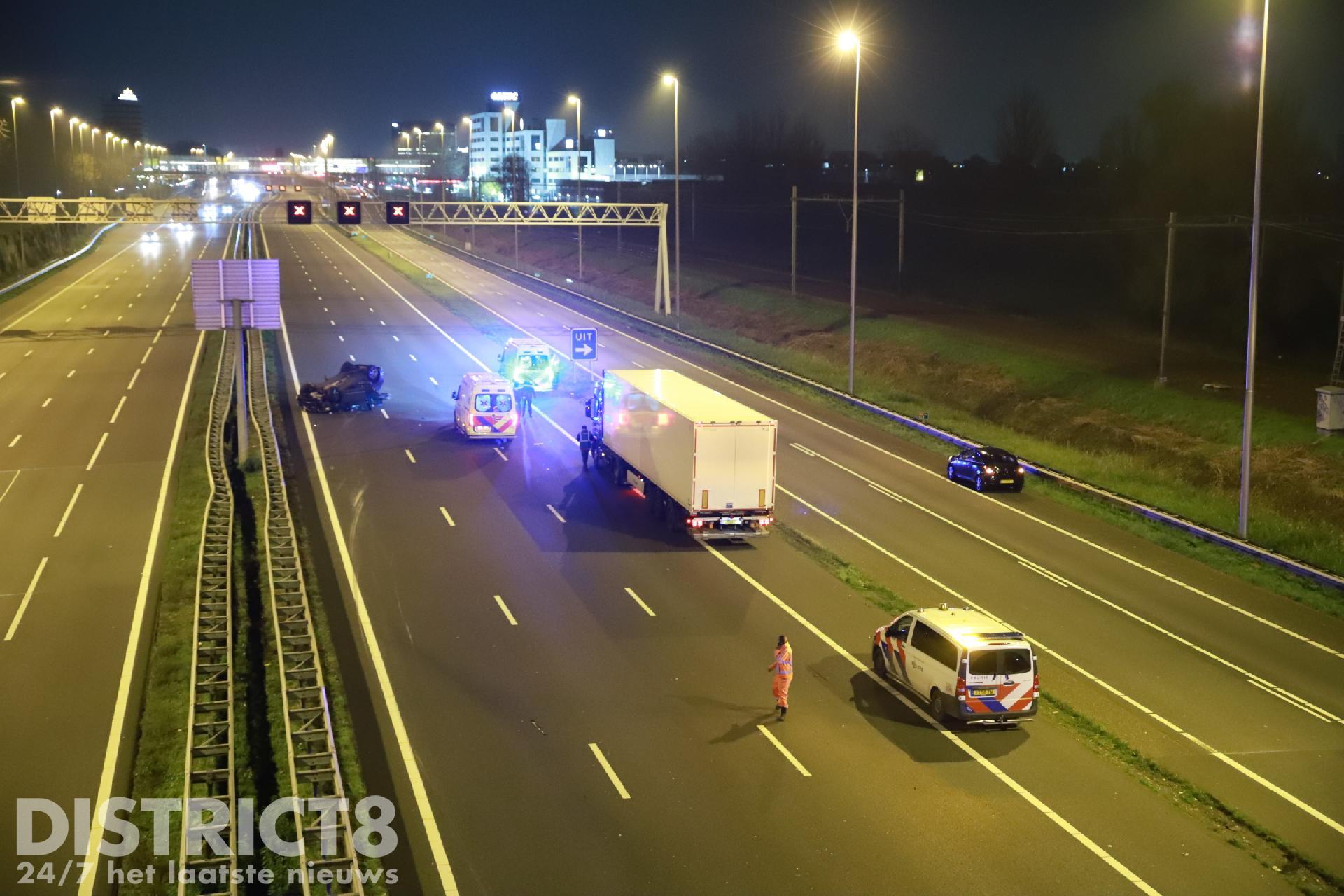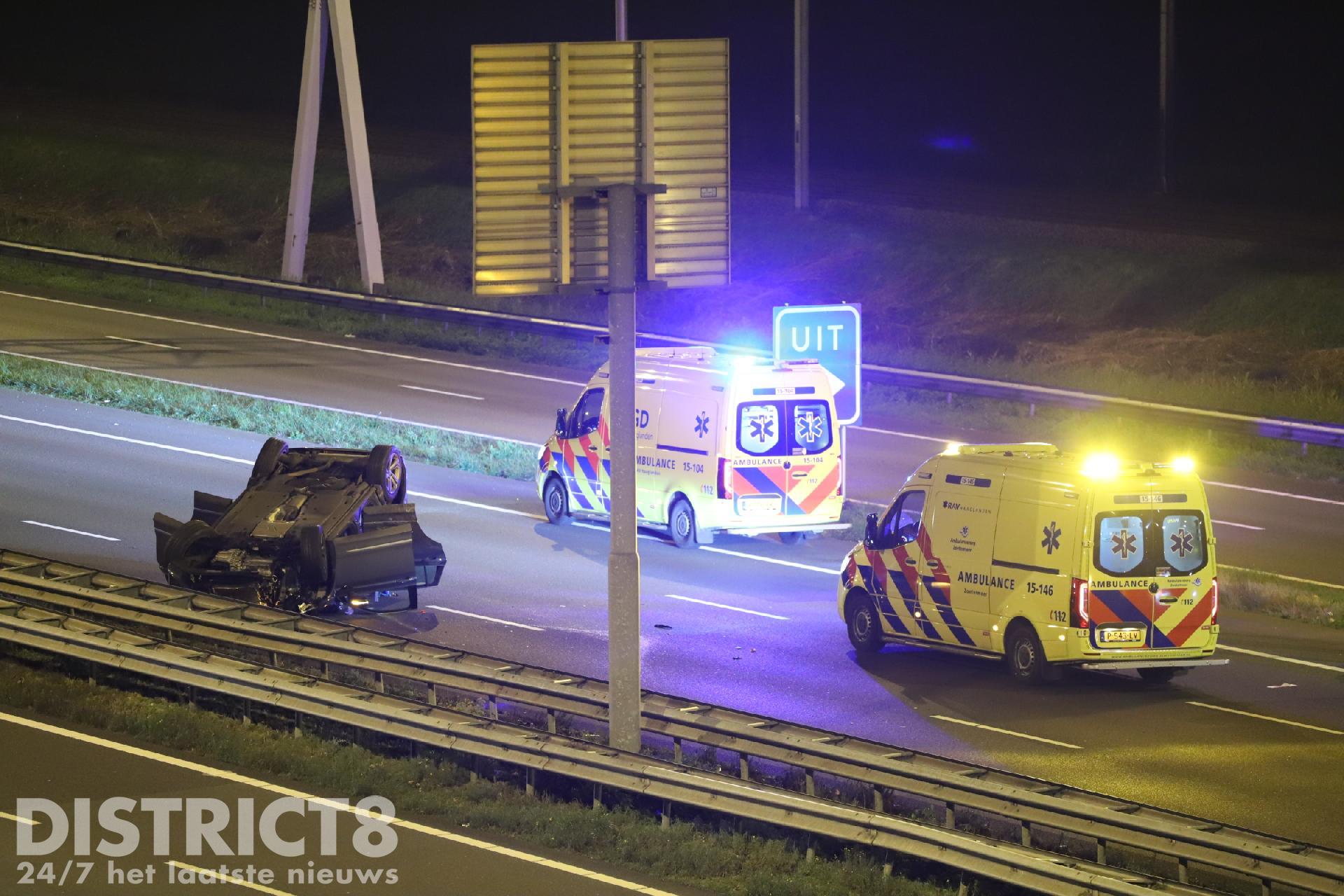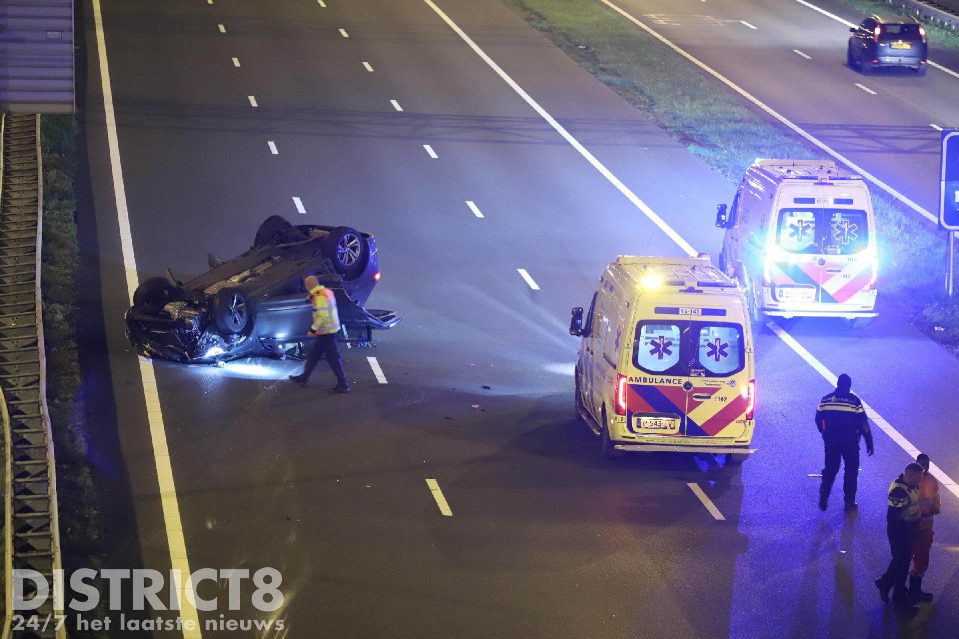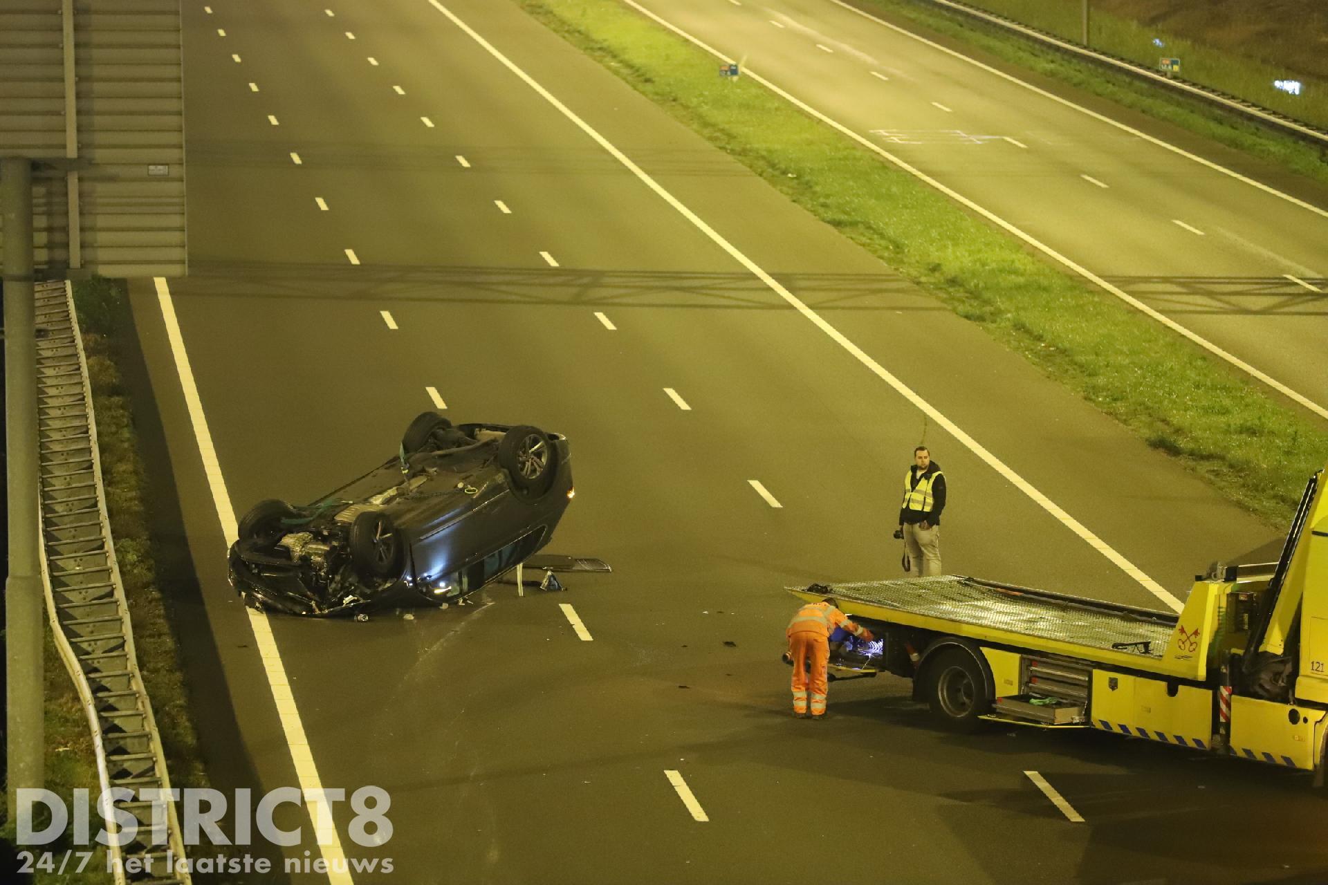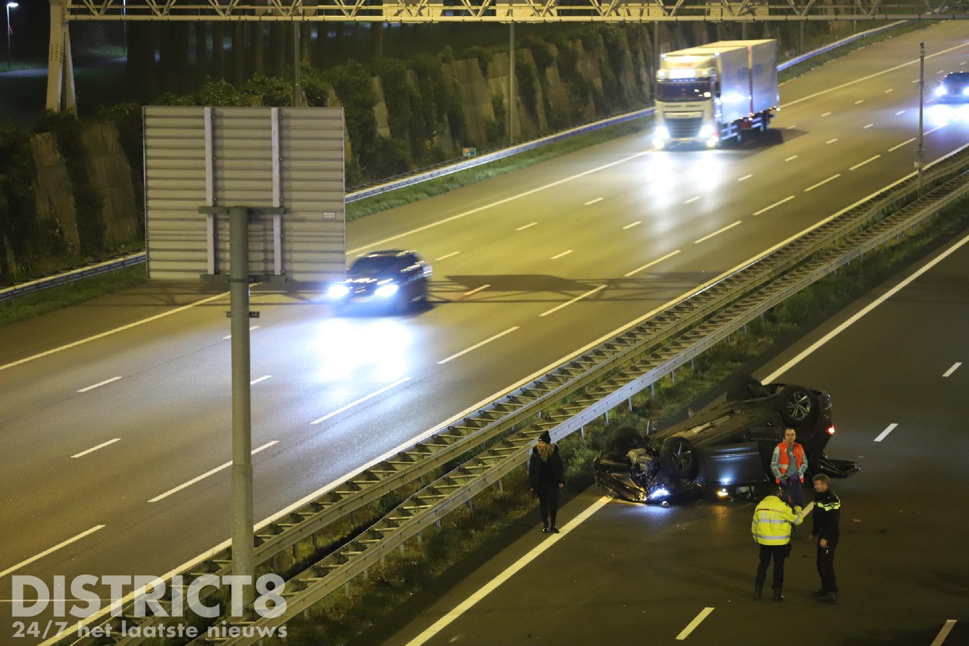 Zoetermeer – De A12 in de richting van Utrecht is woensdagavond 1 december volledig afgesloten geweest nadat bij Zoetermeer een auto op z’n dak terecht was gekomen.