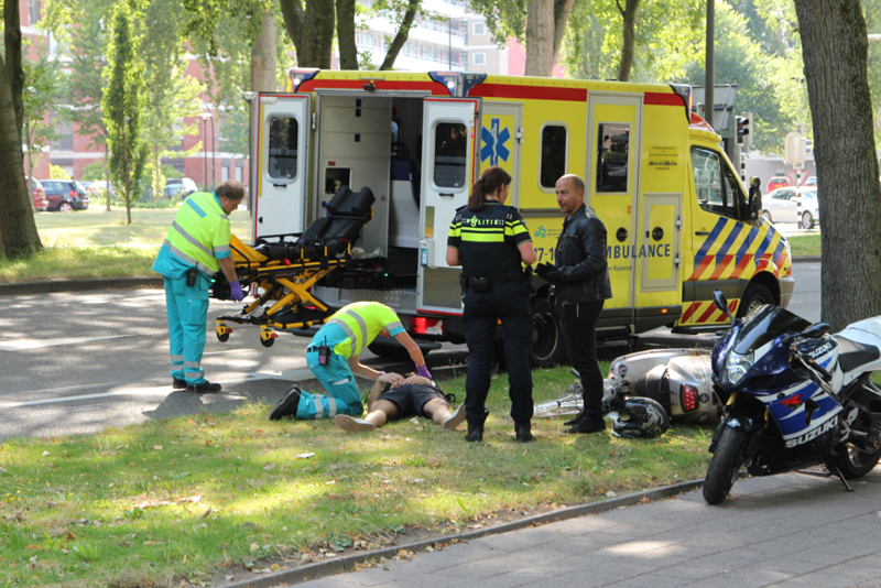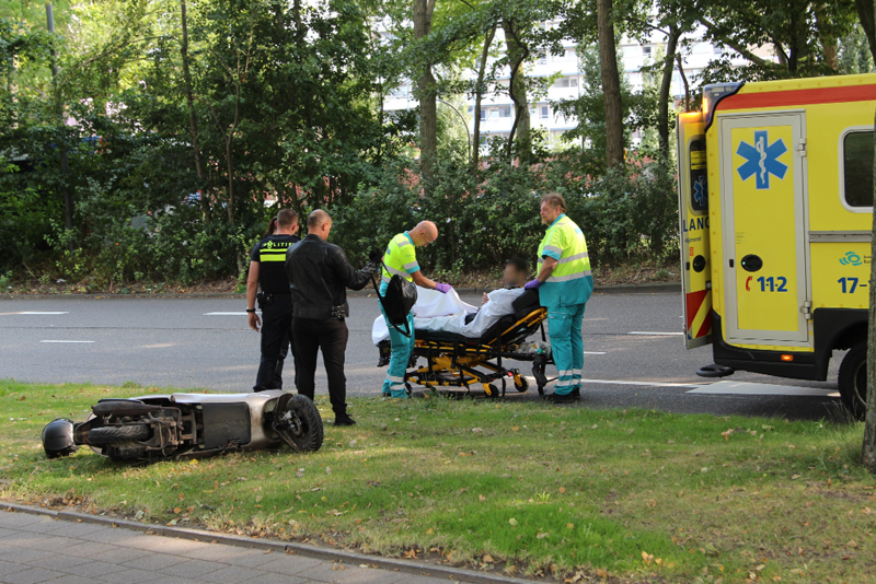 De scooterrijder is naar het ziekenhuis vervoerd.