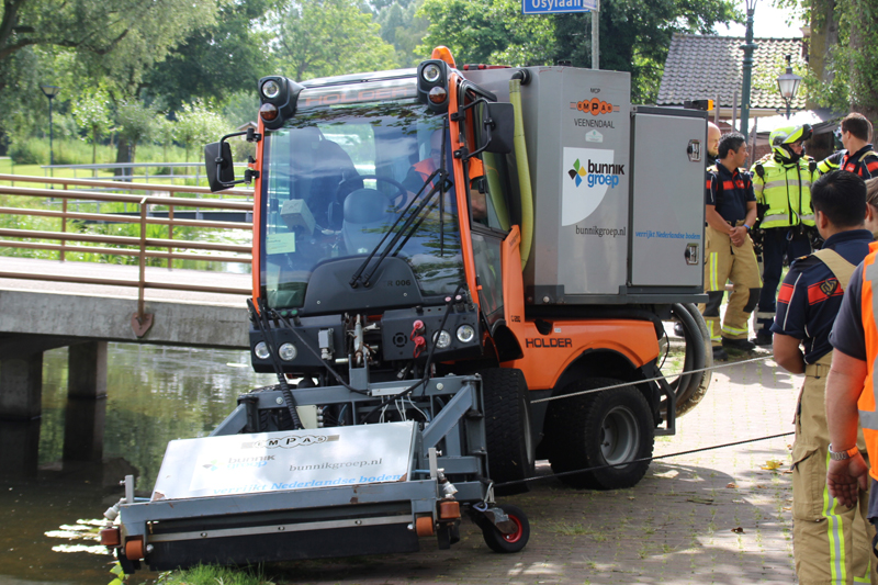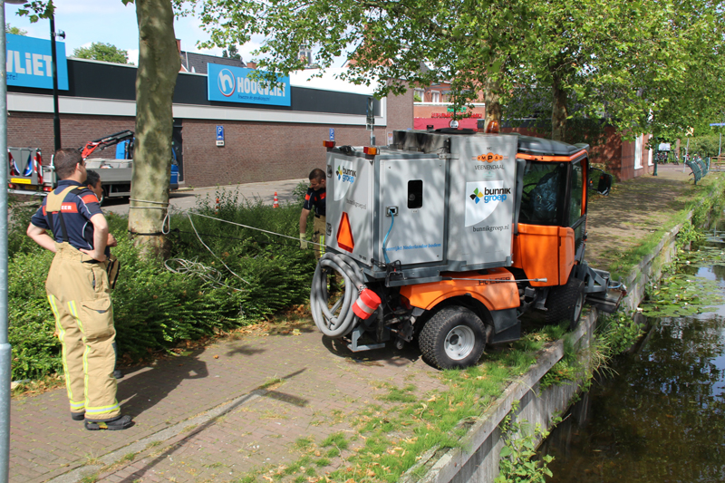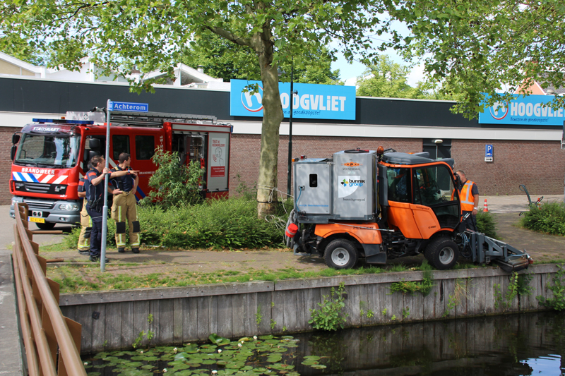 Zoetermeer – Een man in een kleine maaimachine heeft dinsdag een spannend half uur meegemaakt. De man was bezig langs het water bij de Achterom in Zoetermeer toen zijn voertuig te dicht bij het water kwam en zich vast reed op de kade. Het voertuig kantelde bijna en de deur van de wagen was door de positie niet te openen.