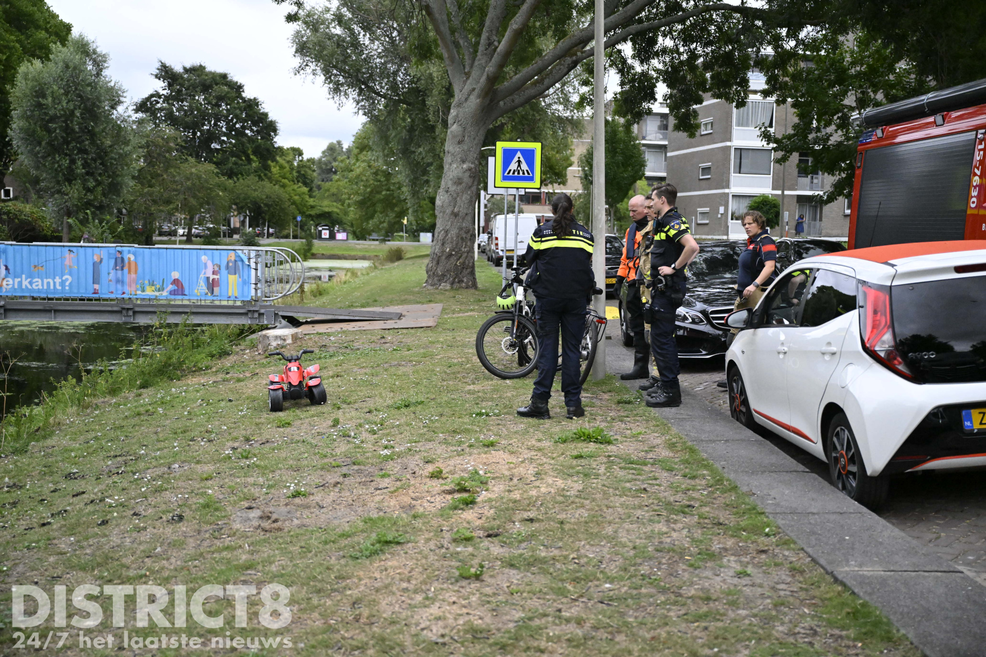 De brandweer en de politie kwamen met spoed ter plaatse. De brandweer heeft met meerdere eenheden het water afgezocht, maar er werd geen persoon aangetroffen.