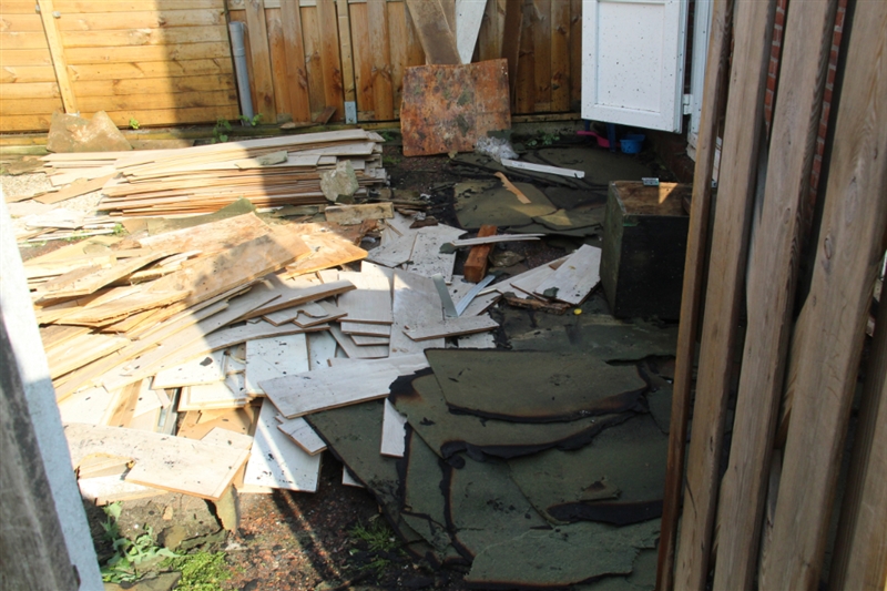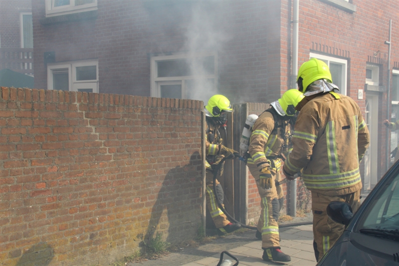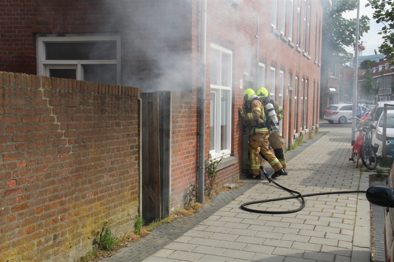 In een tuin aan de straatkant lag een stapel hout wat is beginnen te branden en is overgeslagen naar de woning. Bij aankomst van de brandweer kwam de rook uit de woning. Omdat er niemand thuis was, moest de deur worden geforceerd om binnen te komen.