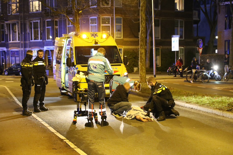 Na de steekpartij sloeg de verdachte op de vlucht. Op de Julianalaan in Delft stortte hij gewond in elkaar. Hij wordt door het ambulancepersoneel onderzocht.