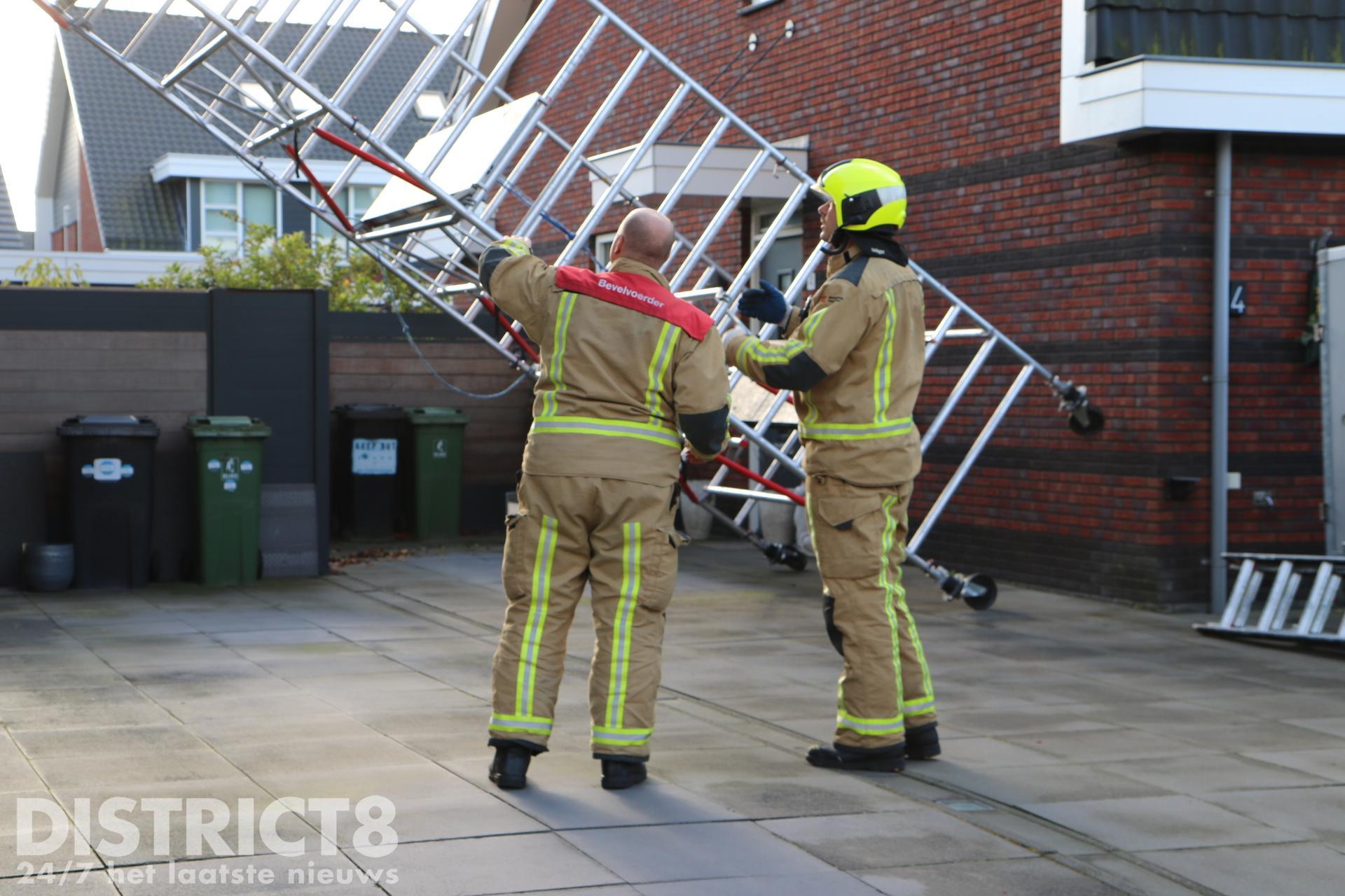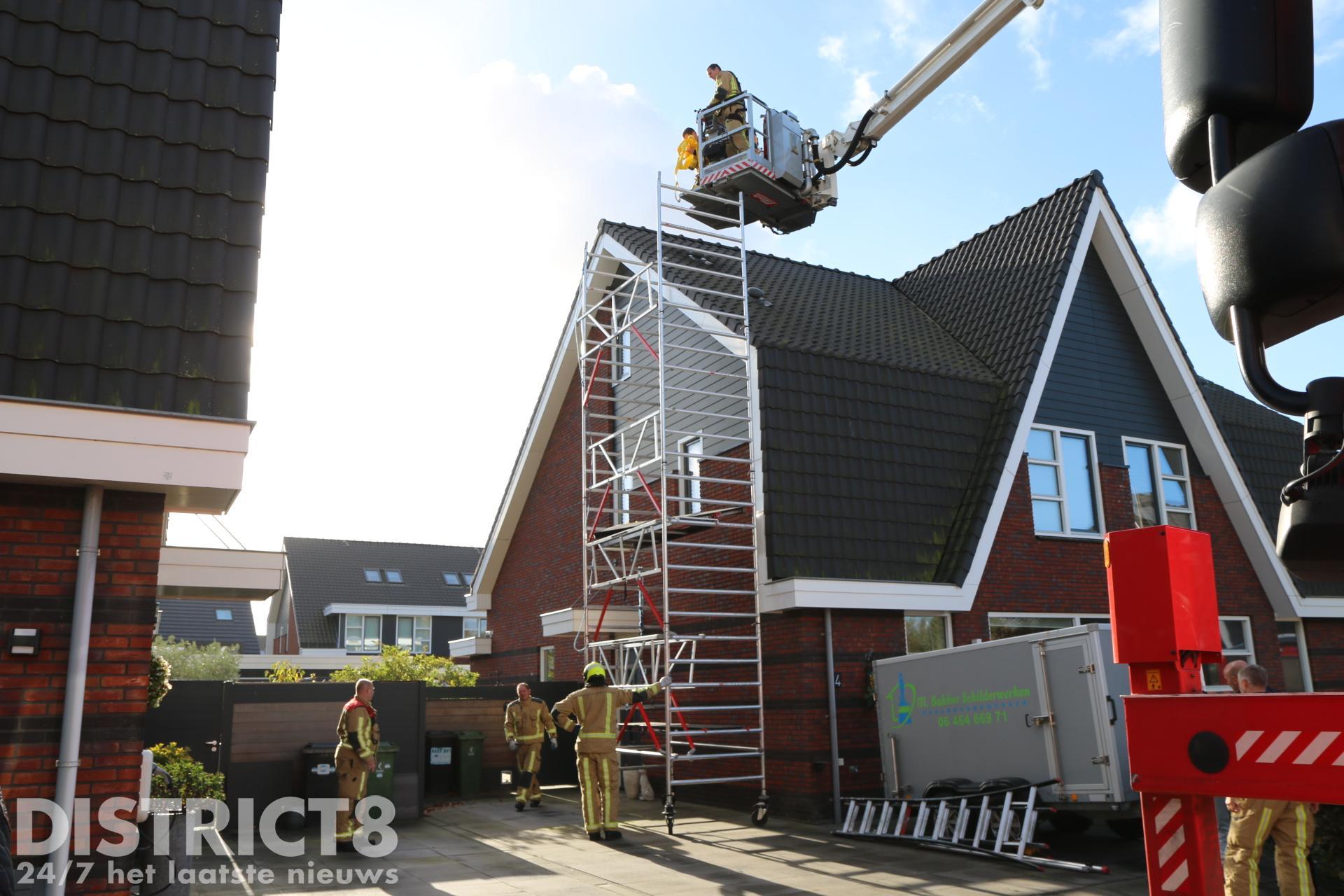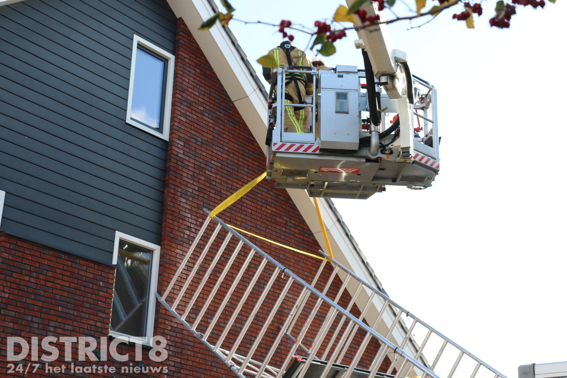 Uiteindelijk lukte het de brandweer op de steiger weer veilig tegen de gevel van de woning te zetten. Nadat de steiger was vastgezet kon de brandweer retour.