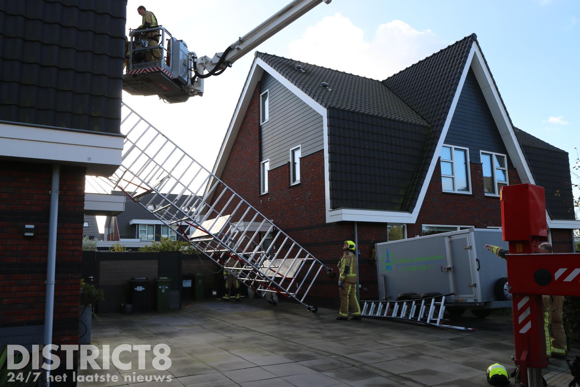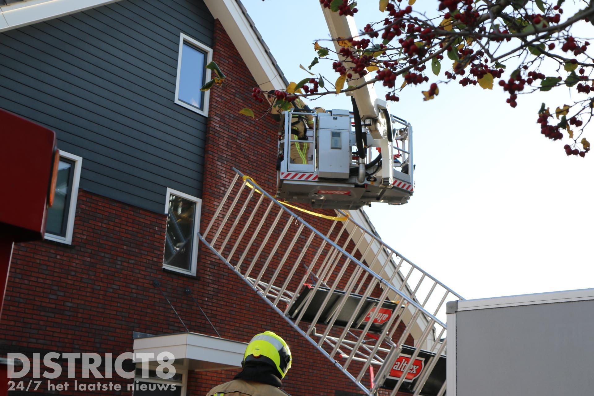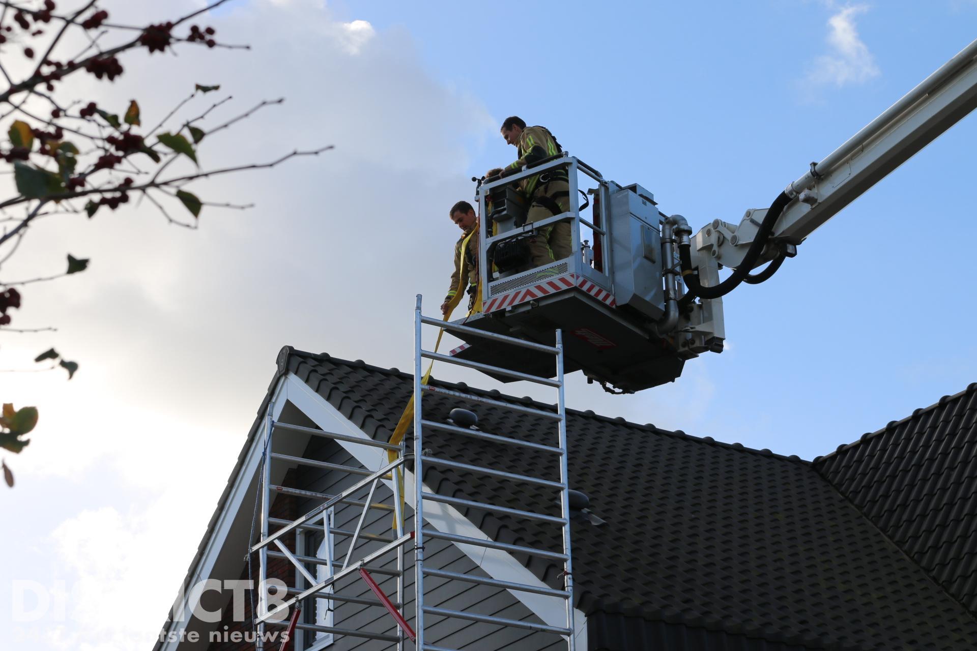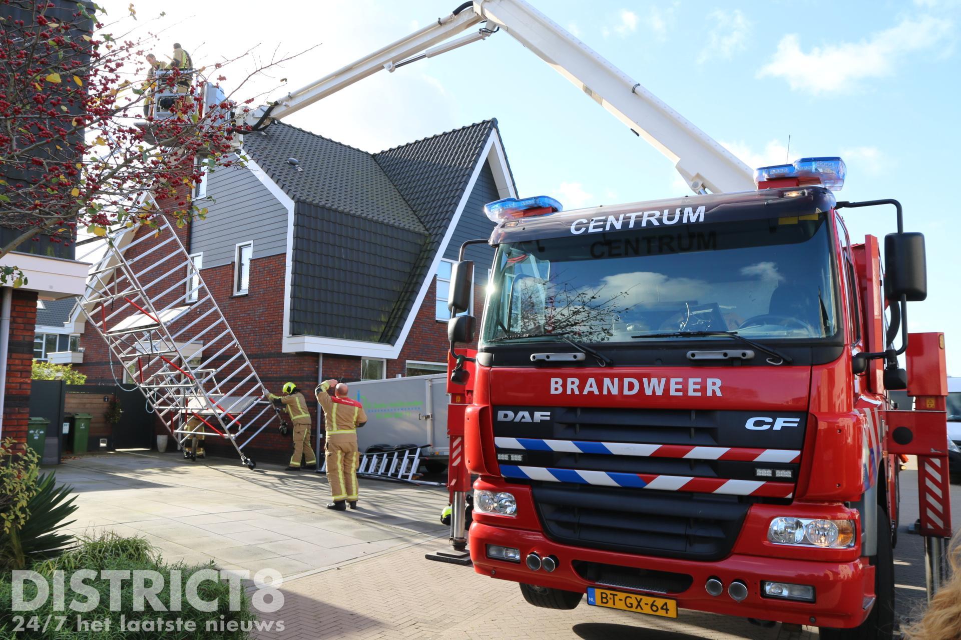 Uiteindelijk lukte het de brandweer op de steiger weer veilig tegen de gevel van de woning te zetten. Nadat de steiger was vastgezet kon de brandweer retour.