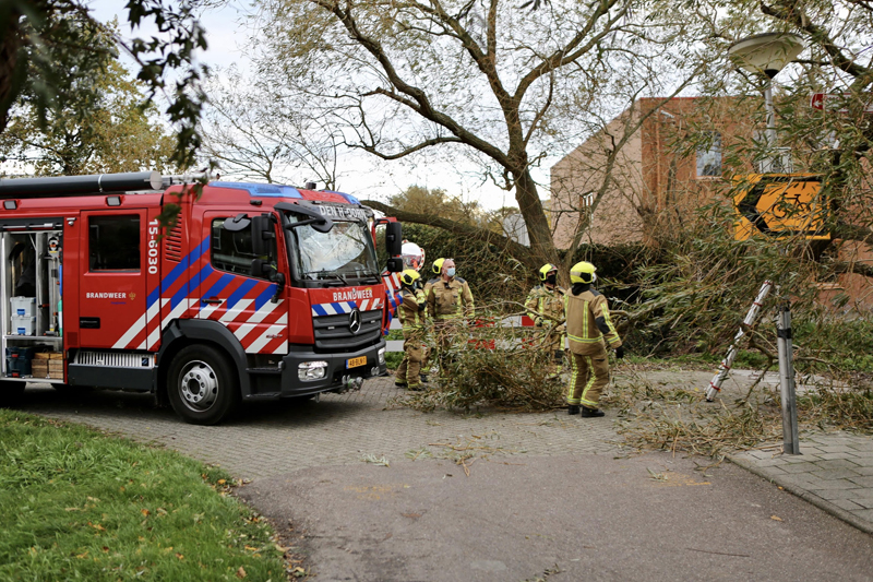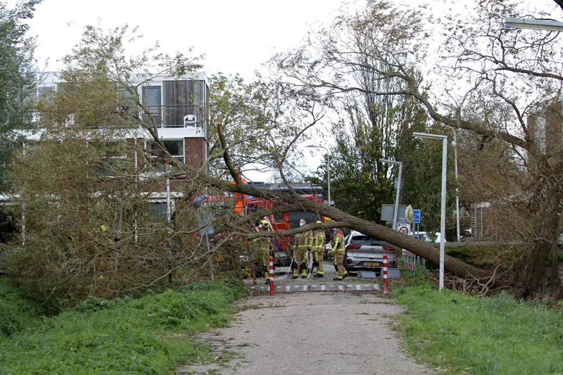 De Tanthofkade werd een tijdlang geblokkeerd door een boom die de storm niet heeft weerstaan. Even na 17:15 werd de brandweer van Den Hoorn opgeroepen voor stormschade.