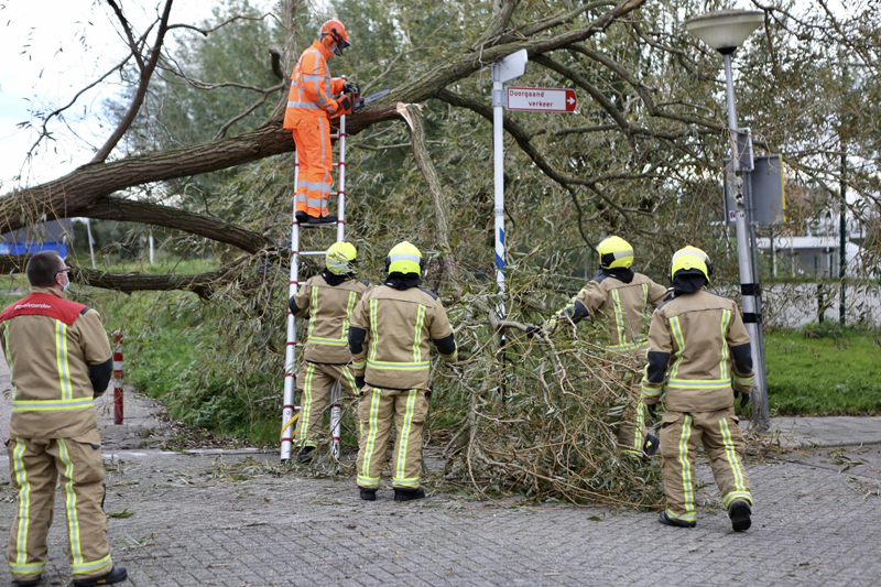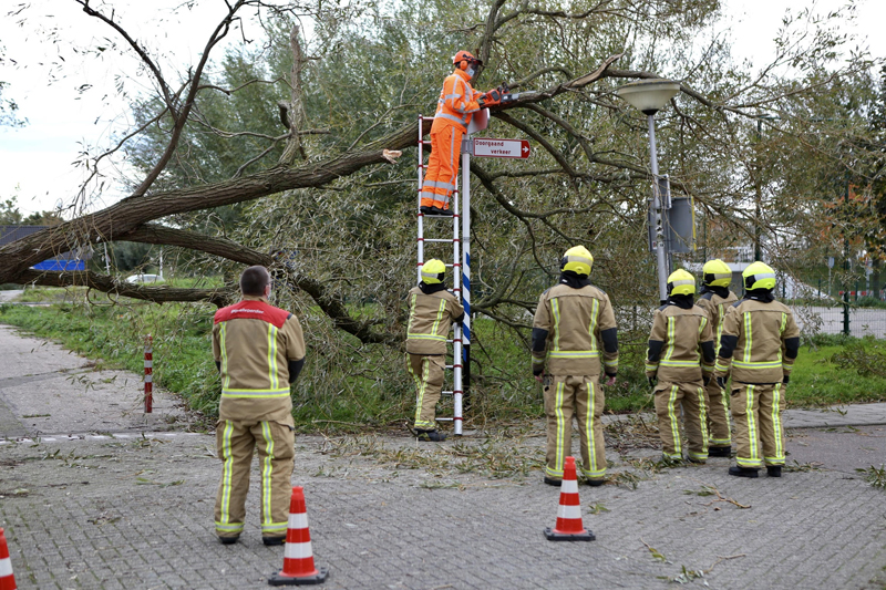De brandweer heeft de boom in stukken gezaagd en het fietspad weer vrij gemaakt. Er raakte niemand gewond.