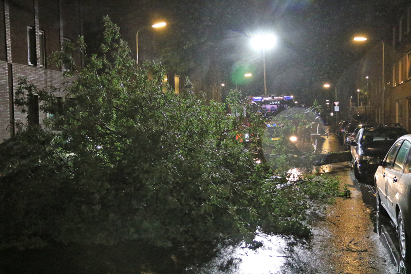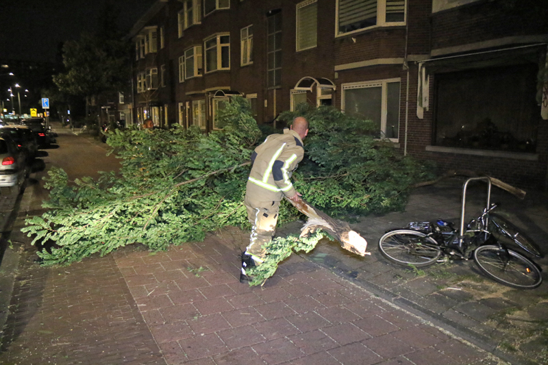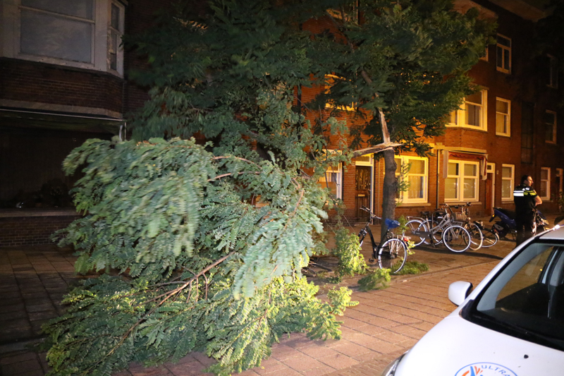 Den Haag – Aan de Hasebroekstraat in Den Haag viel een boom om. Deze kwam op het midden van de weg terecht.