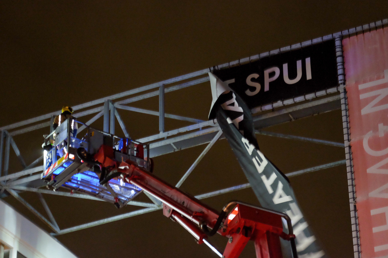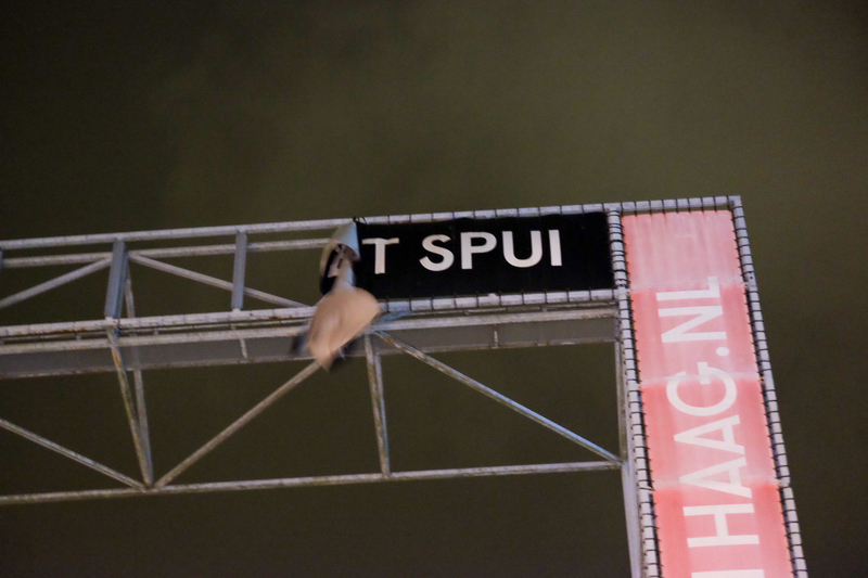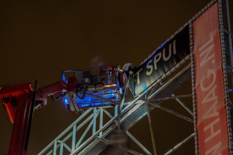Eenmaal ter plaatste bleek het echter te gaan om een losgeslagen spandoek tegenover het filmhuis aan het Spui. De brandweer heeft het spandoek verwijderd en is vervolgens retour gegaan.