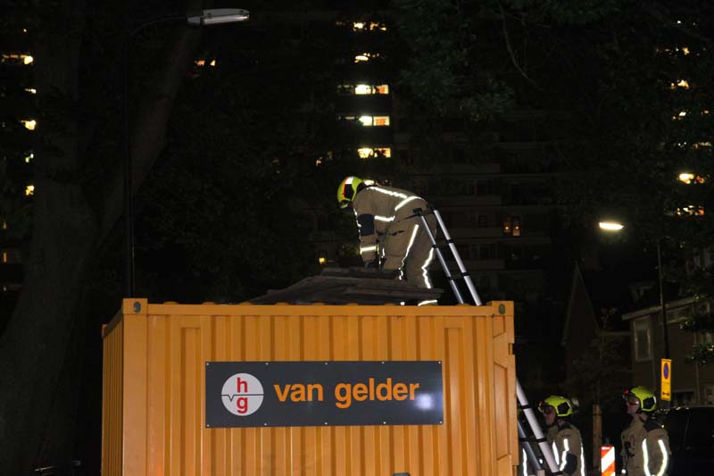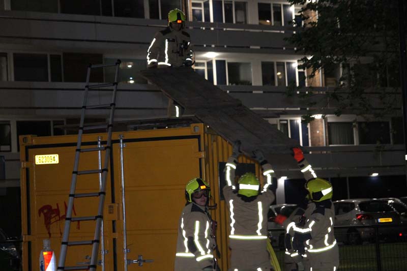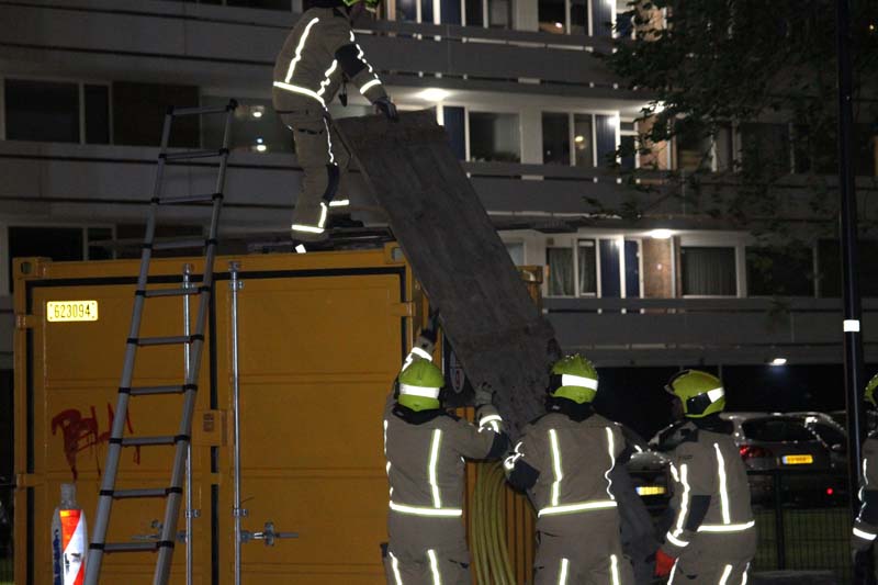 Rijswijk – Op de Ocarinalaan in Rijswijk heeft de brandweer enkele gevaarlijk liggende houten platen verwijderd van een bouwcontainer.