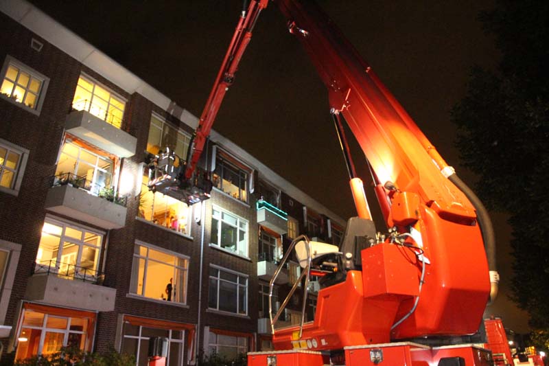De brandweer heeft met behulp van de hoogwerker het zonnescherm ingerold en tijdelijk vastgemaakt.