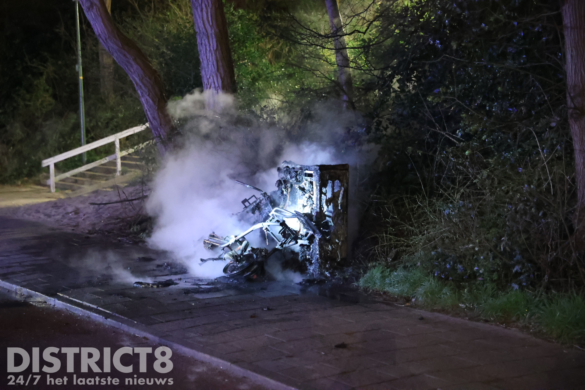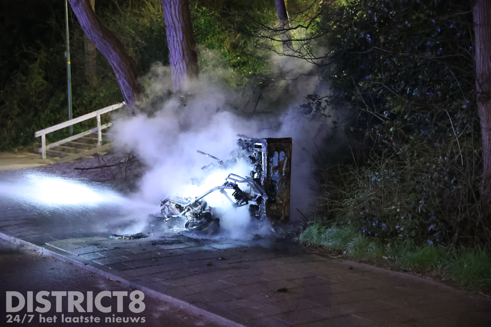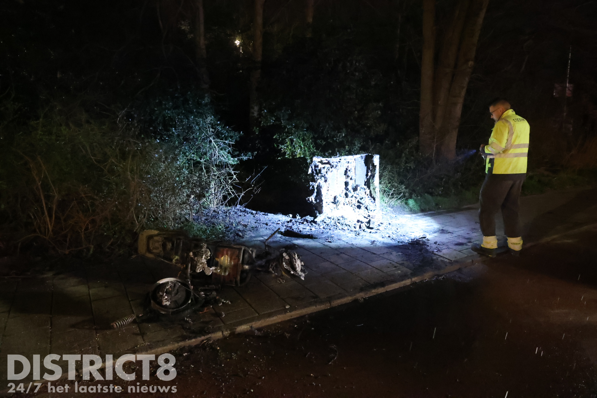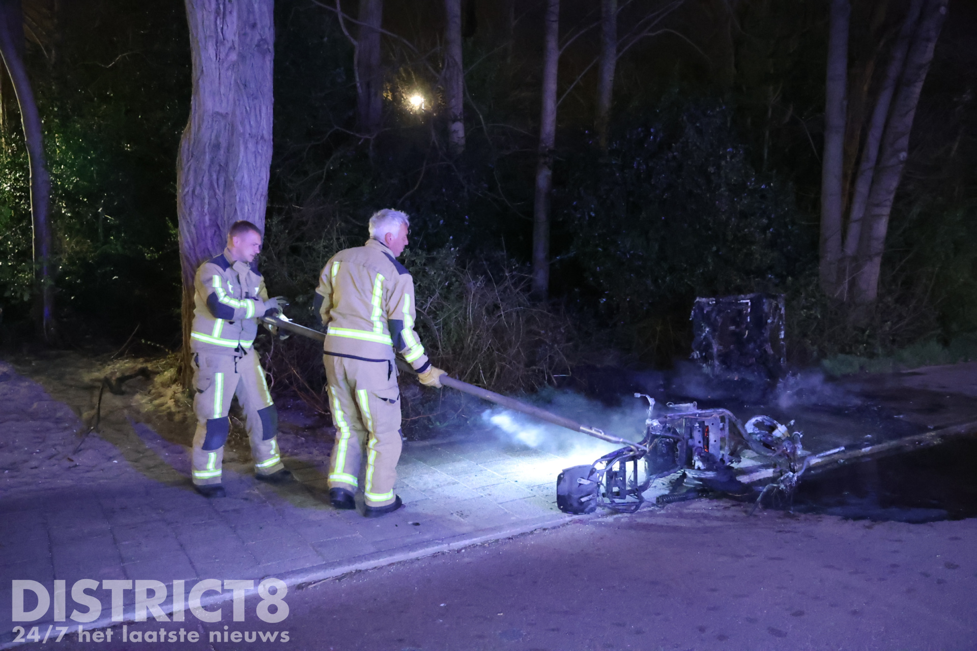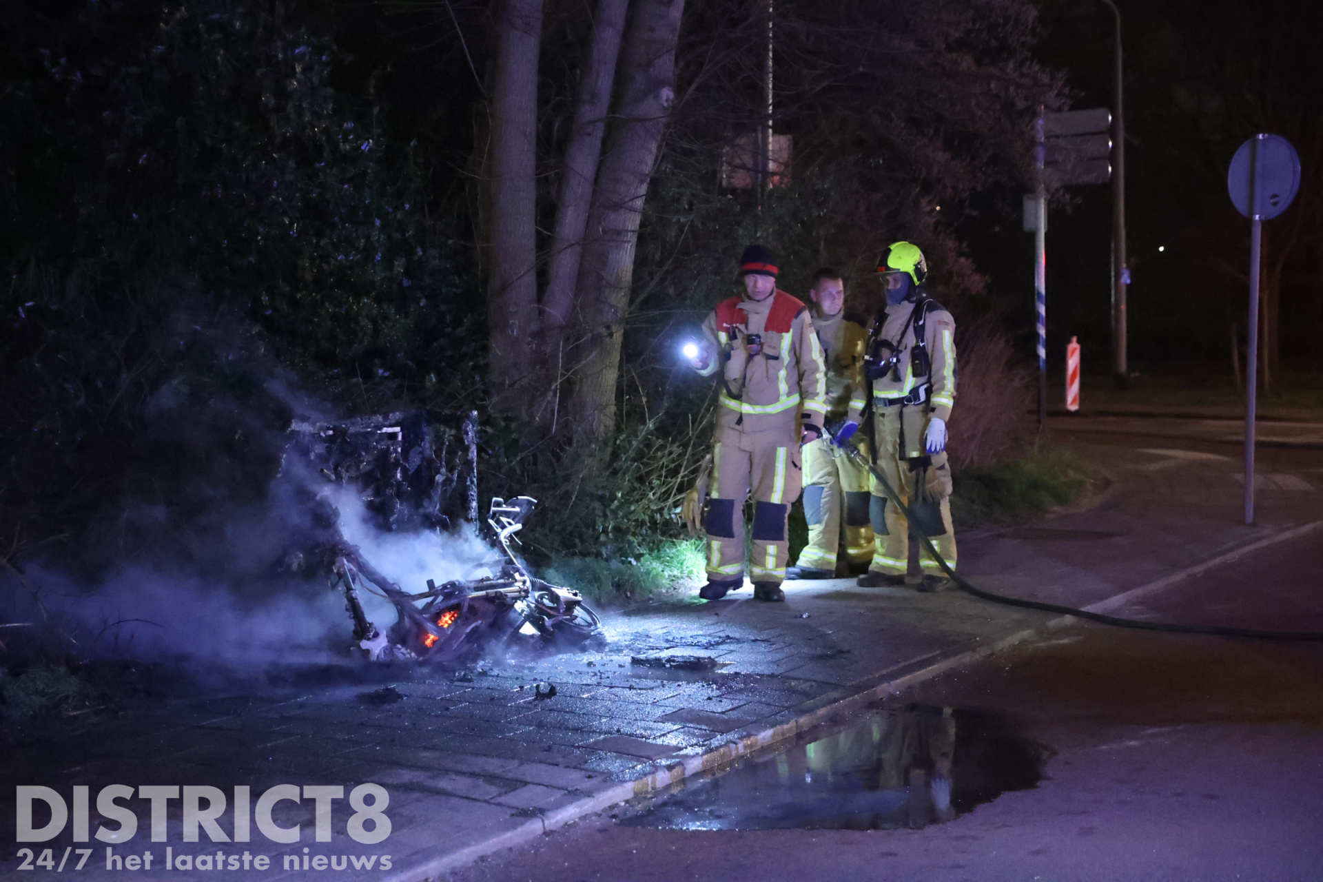 Van de scooter bleef weinig over. De politie heeft hiervan melding gemaakt bij de gemeente om de scooter te laten verwijderen.