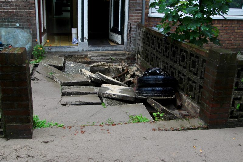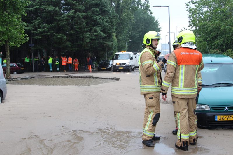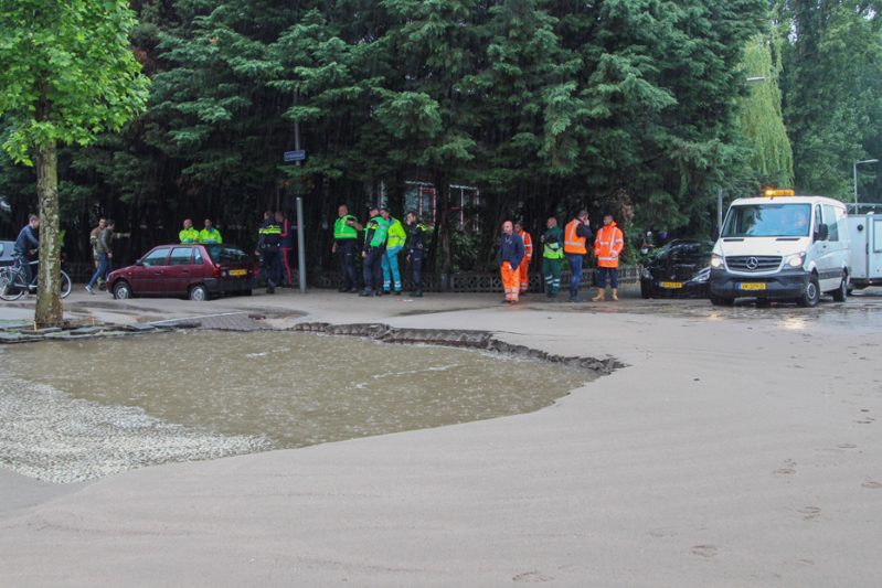De oorzaak is vermoedelijk een waterleidingbreuk, die ook een gaslekkage heeft veroorzaakt. De hulpdiensten zijn massaal ter plaatse en hebben opgeschaald naar Grote Hulpverlening en GRIP 2.