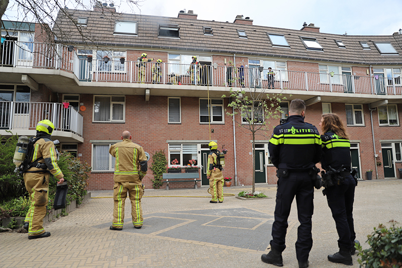 Delft – Zondagmiddag 2 mei is omstreeks 16;00 brand uitgebroken op de zolder van een woning aan het Blekerhof in Delft.