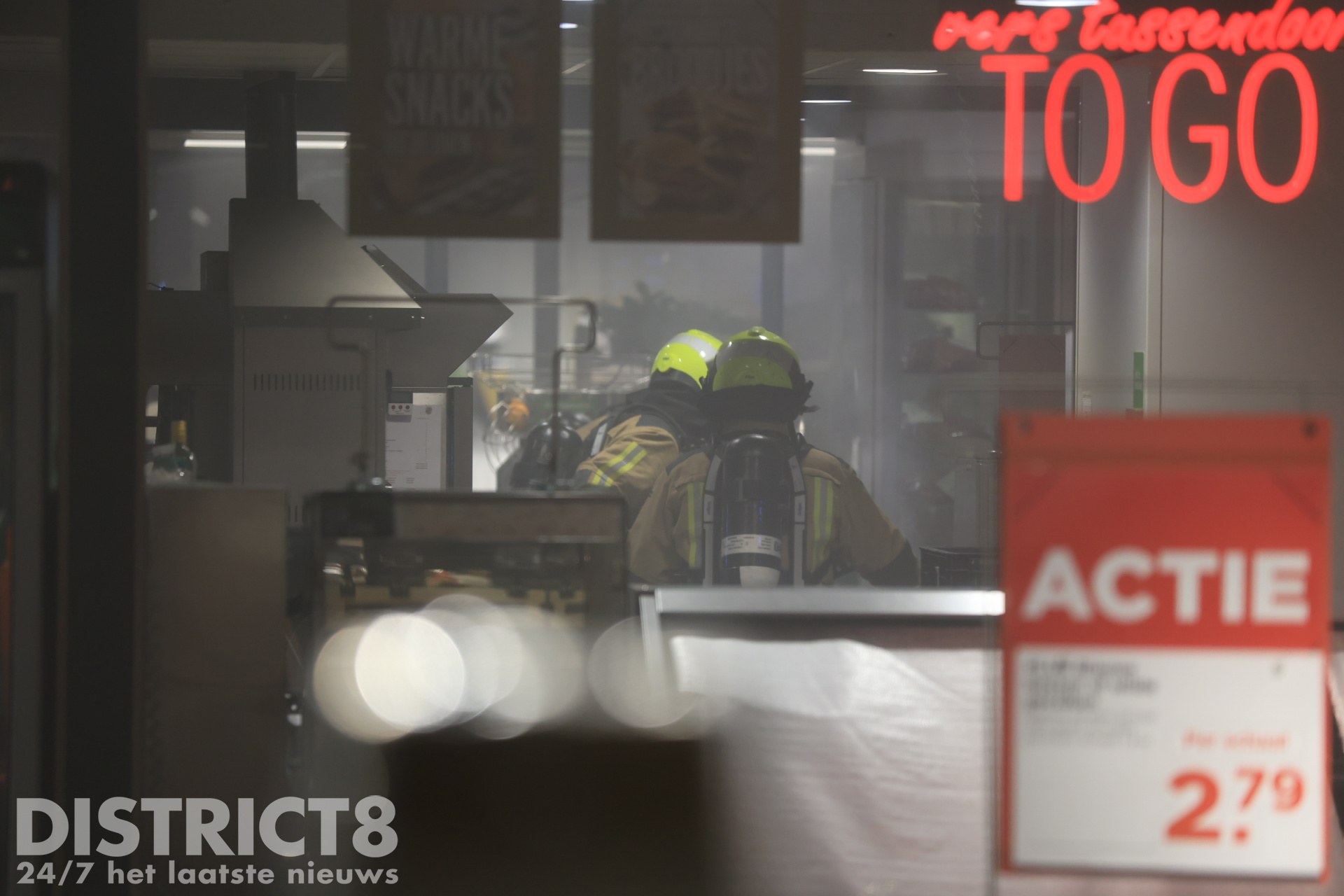 De winkel stond door het smeulen onder de rook, de brandweer heeft de winkel geventileerd om de rook uit het pand te blazen.