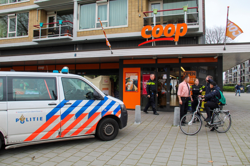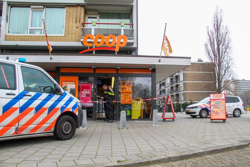 Schiedam – Rond 9:20 op woensdagmorgen is de COOP supermarkt op de ‘s-Gravelandseweg door twee mannen overvallen. De bedrijfsleider van de supermarkt is beide heren tijdens hun vlucht achterna gerend, maar heeft ze niet meer kunnen overmeesteren. De daders hadden aan de overkant van de weg, ter hoogte van het oude DSW kantoor een zwarte scooter klaar staan. Ze zijn vervolgens weggereden in de richting van het Sparta station. Beiden waren donker gekleed, ongeveer 1,60 lang. Dader 1 droeg een korte blauwe jas en had een slank postuur. De daders waren in het bezit van een gele plastic tas. Vrij snel na de overval is één verdachte aangehouden. De tweede is voortvluchtig.