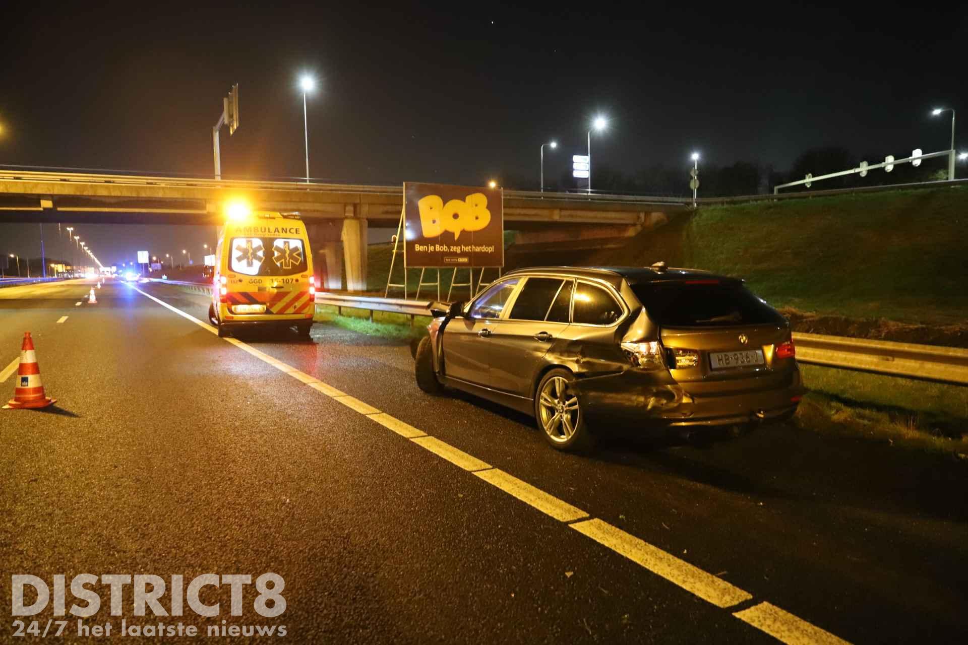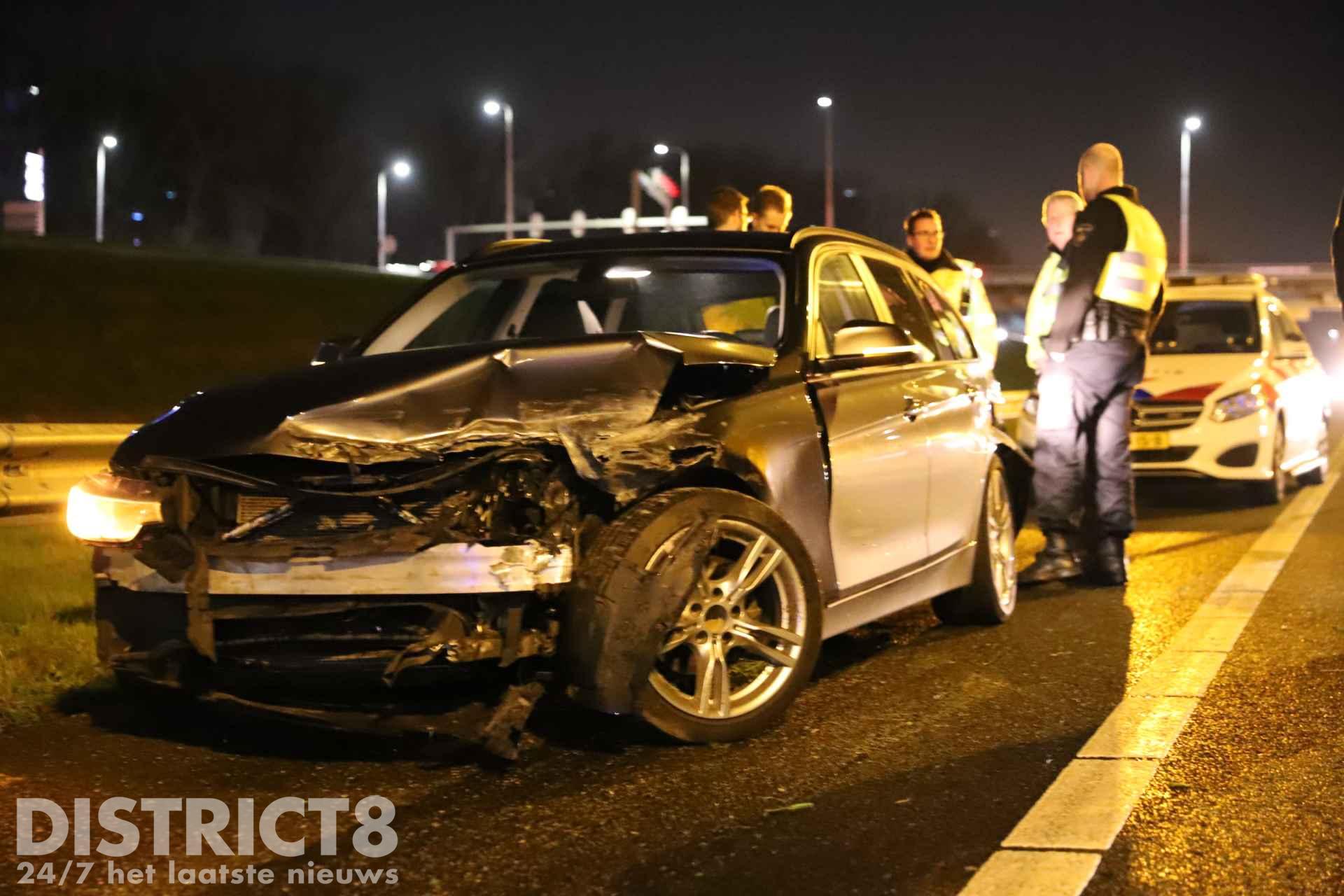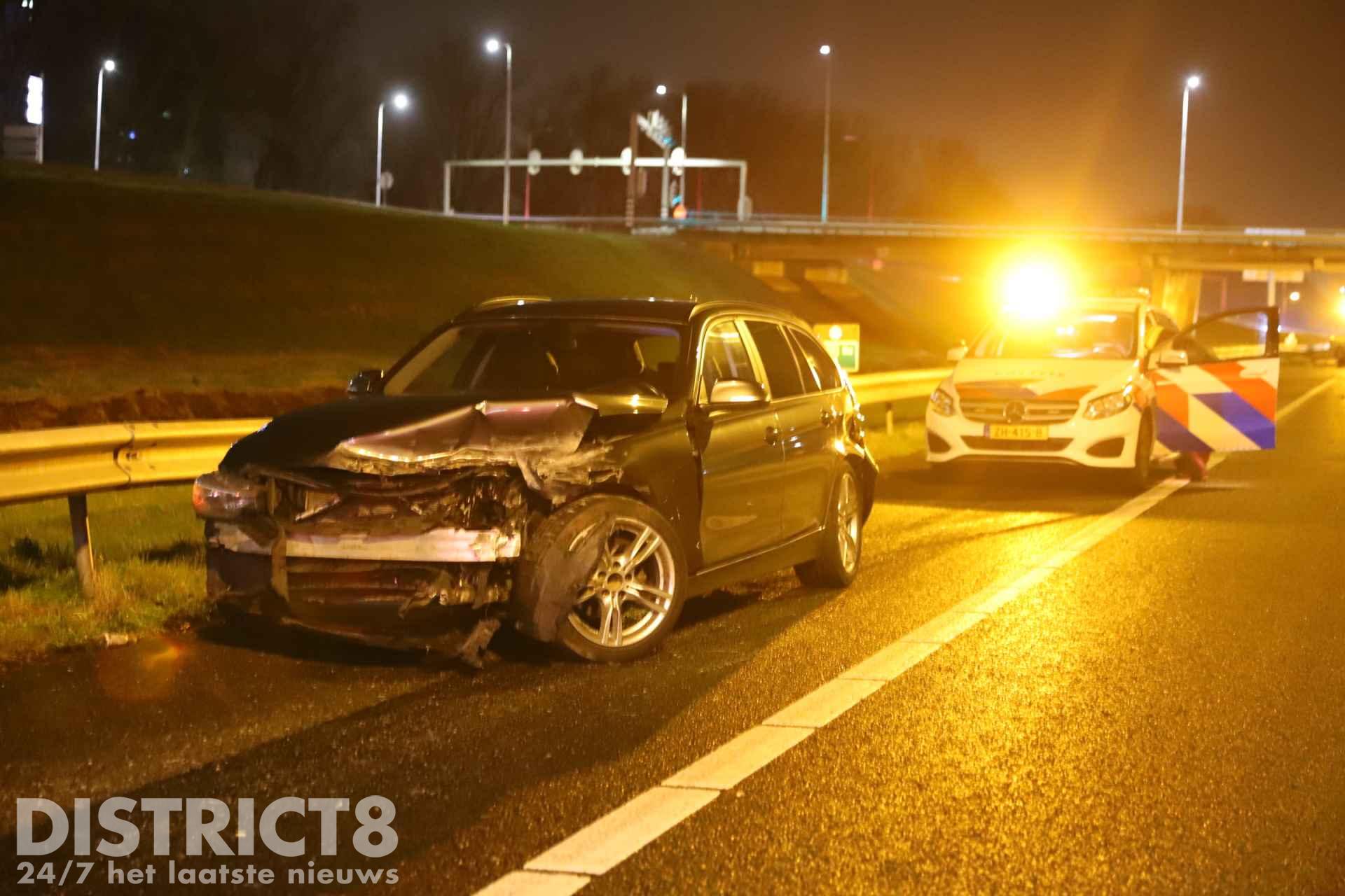 Rond tien over tien raakte de automobilist de macht over het stuur kwijt en ramde twee geleiderails (in de volksmond ook wel vangrail genoemd, red.).