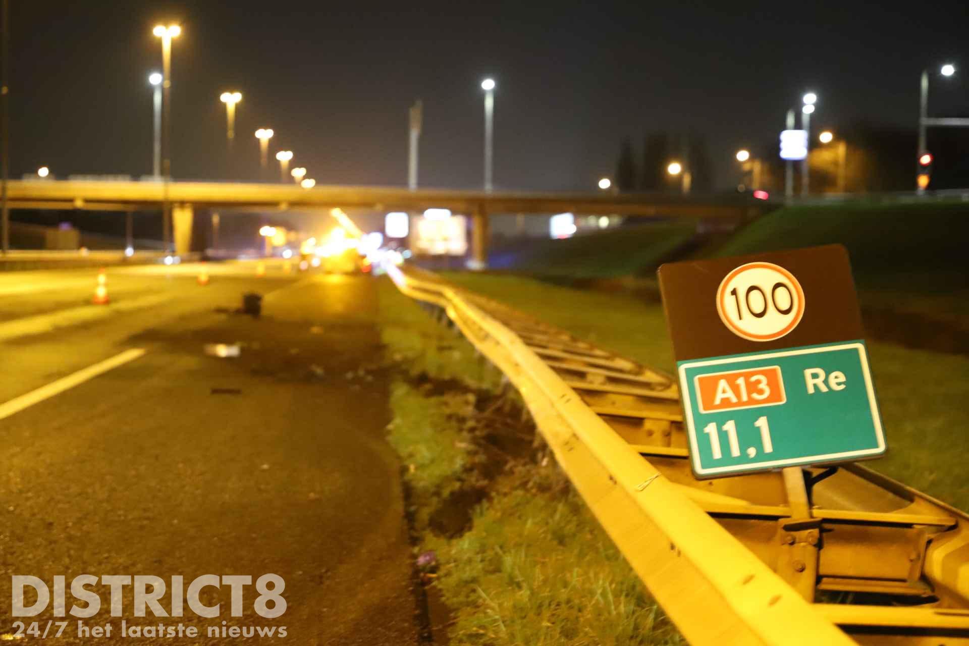 Delft – Op de A13 bij Delft is vanavond een taxi zwaar beschadigd geraakt na een ongeval.