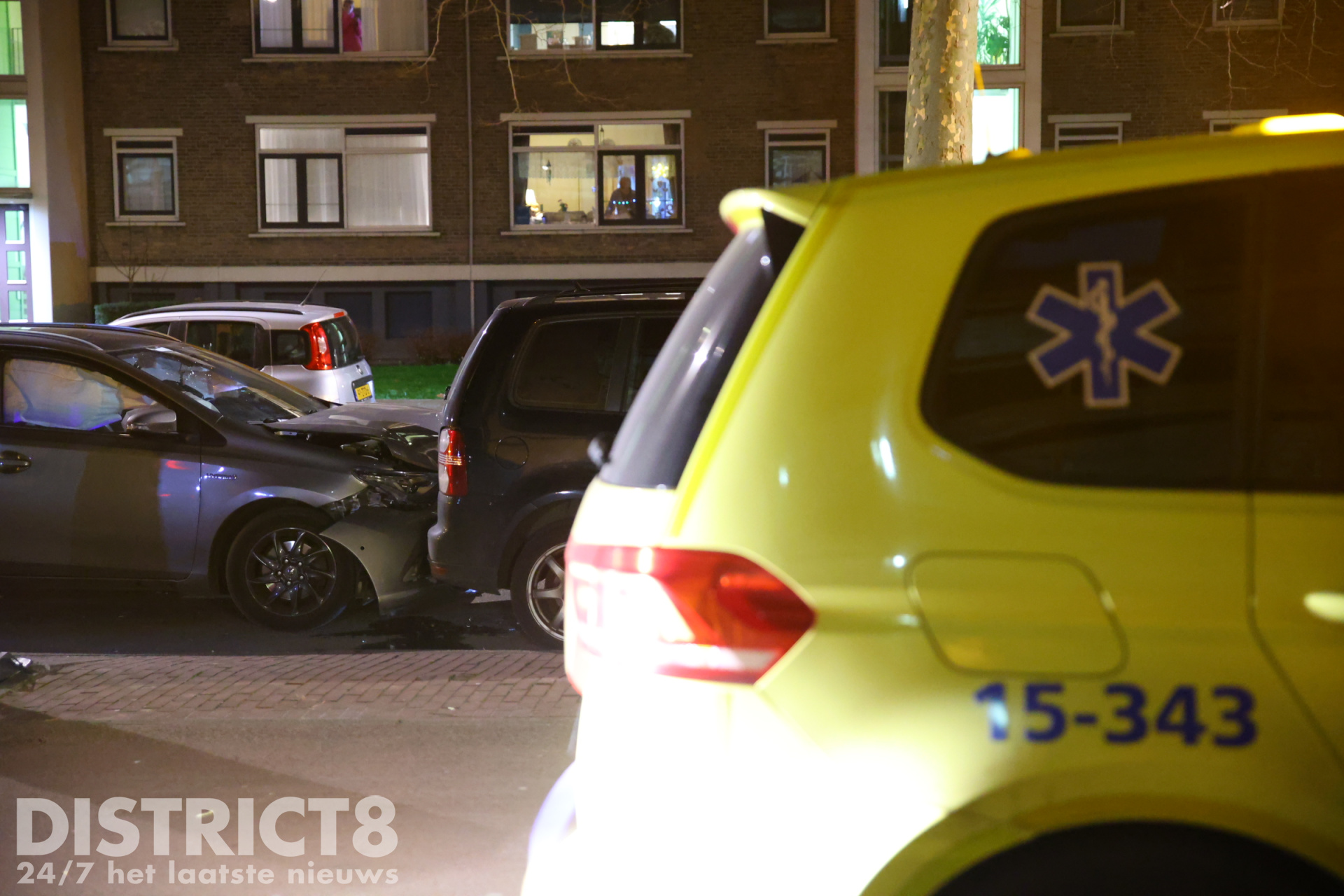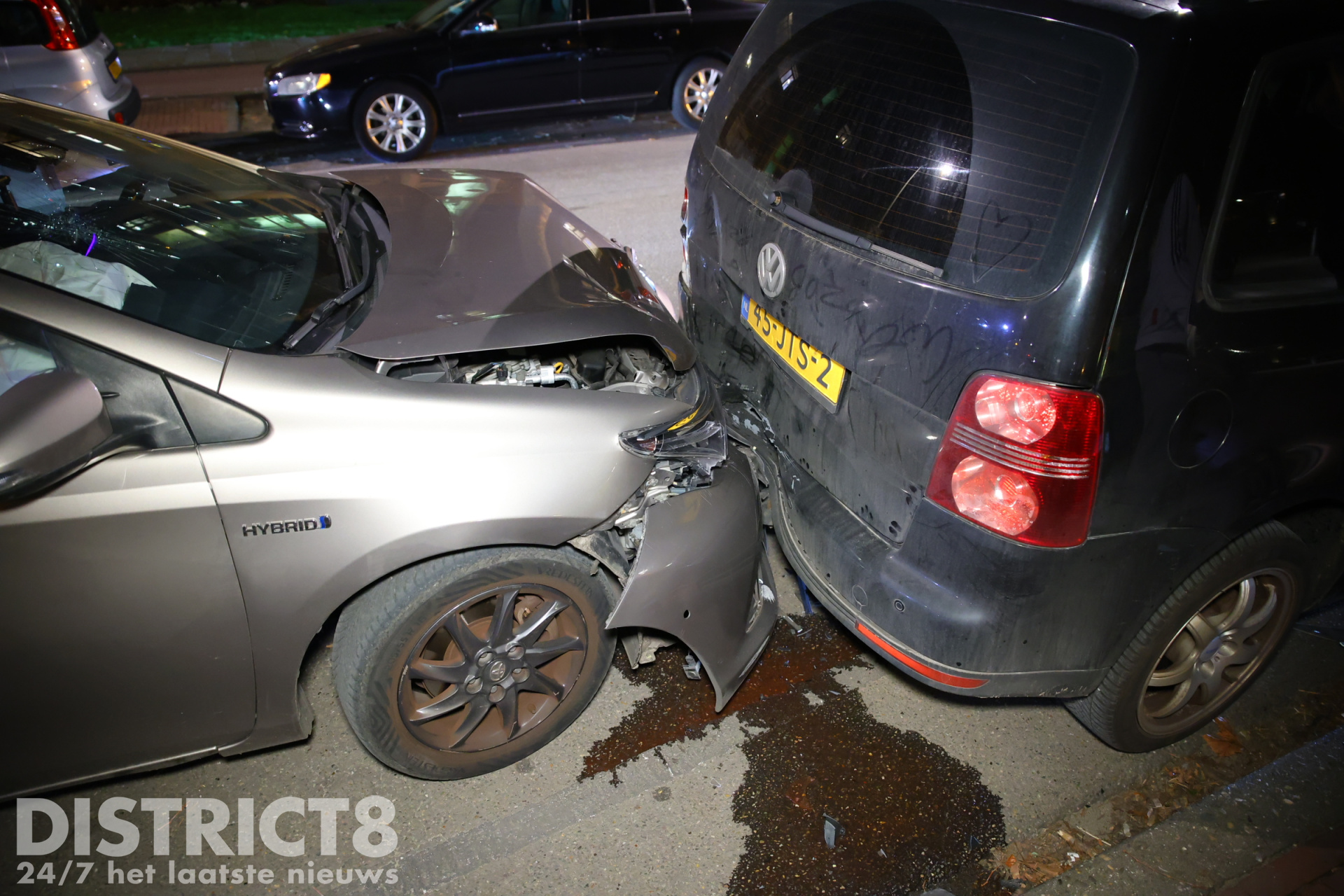 De taxichauffeur reed door een nog onbekende oorzaak tegen een geparkeerde auto aan, die doorschoof naar een andere geparkeerde auto. In totaal raakten drie voertuigen beschadigd.