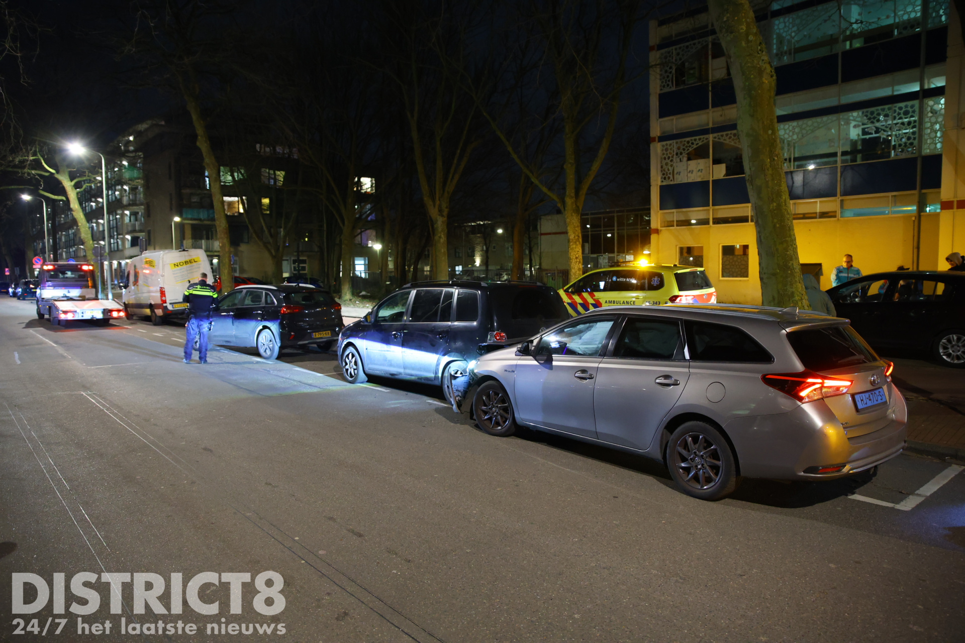 De bestuurder van de taxi is nagekeken door de ambulancedienst, maar raakte niet gewond.