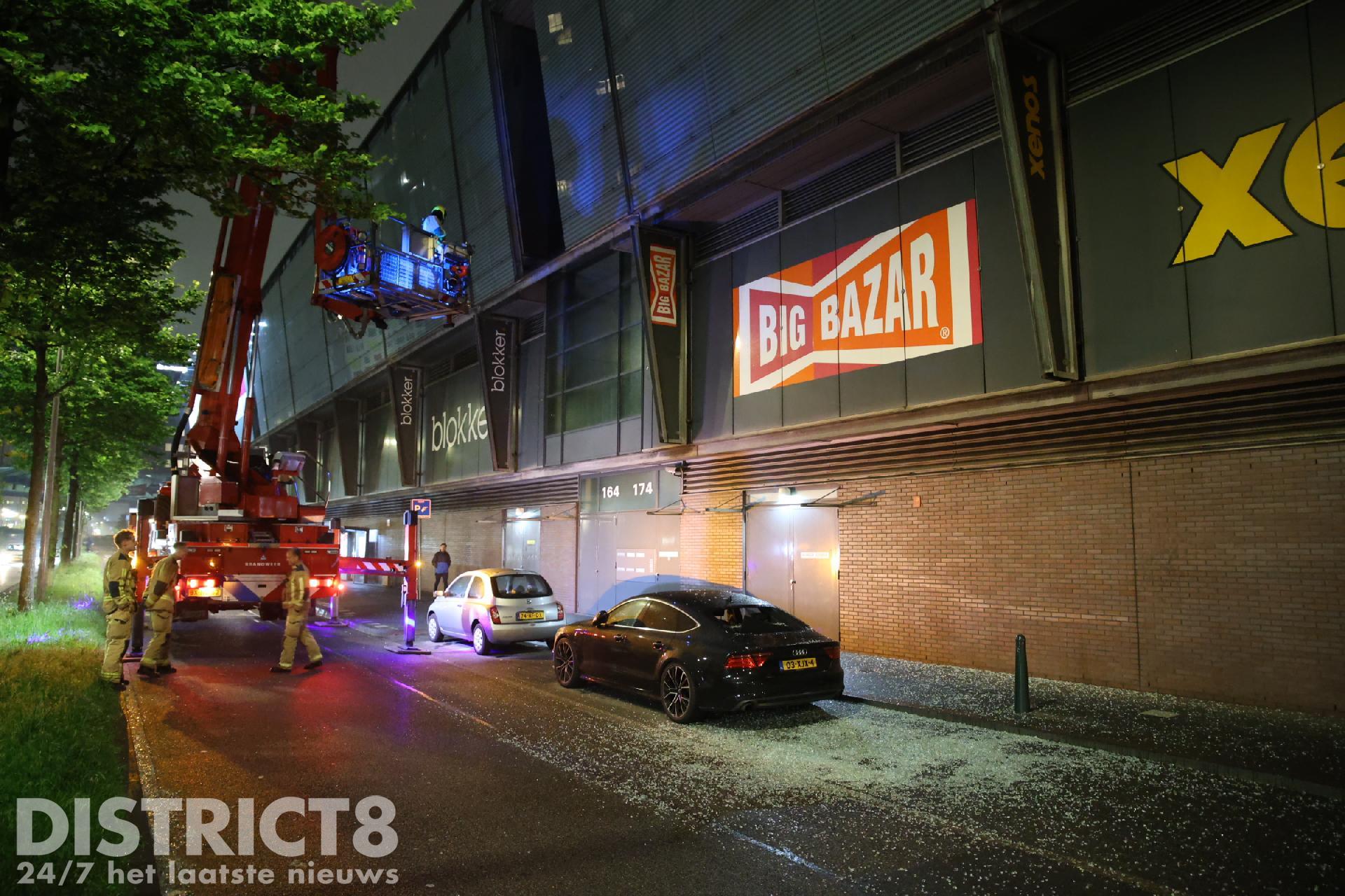 De brandweer is ter plaatse gekomen en heeft met een hoogwerker gekeken naar de ramen die nog wel in de gevel zaten. Na korte controle bleek hier geen spraken van, de brandweer heeft de gemeente en de eigenaar van de Megastores geïnformeerd over het voorval.
