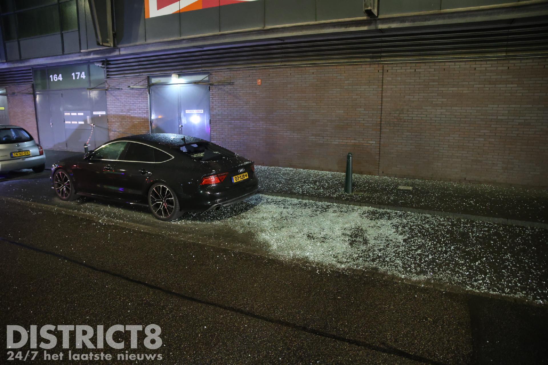Den Haag – Een geparkeerde auto is in de nacht van vrijdag 31 mei op zaterdag 1 juni slachtoffer geworden van een ware schervenregen aan de Waldorpstraat in Den Haag.