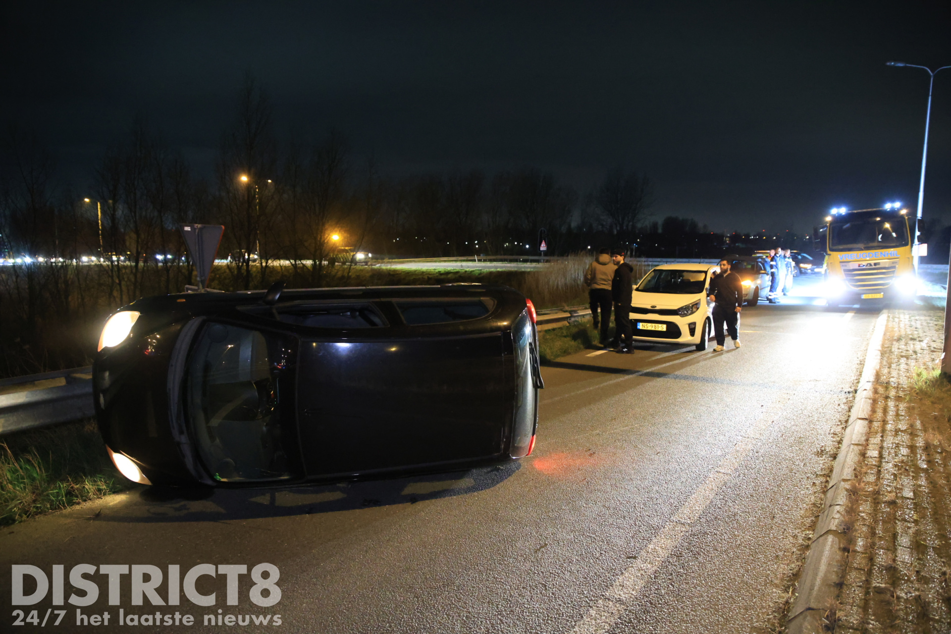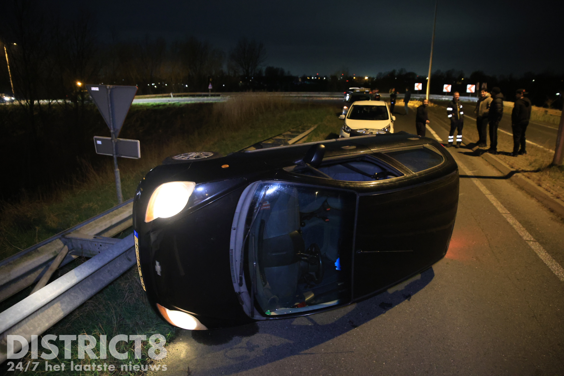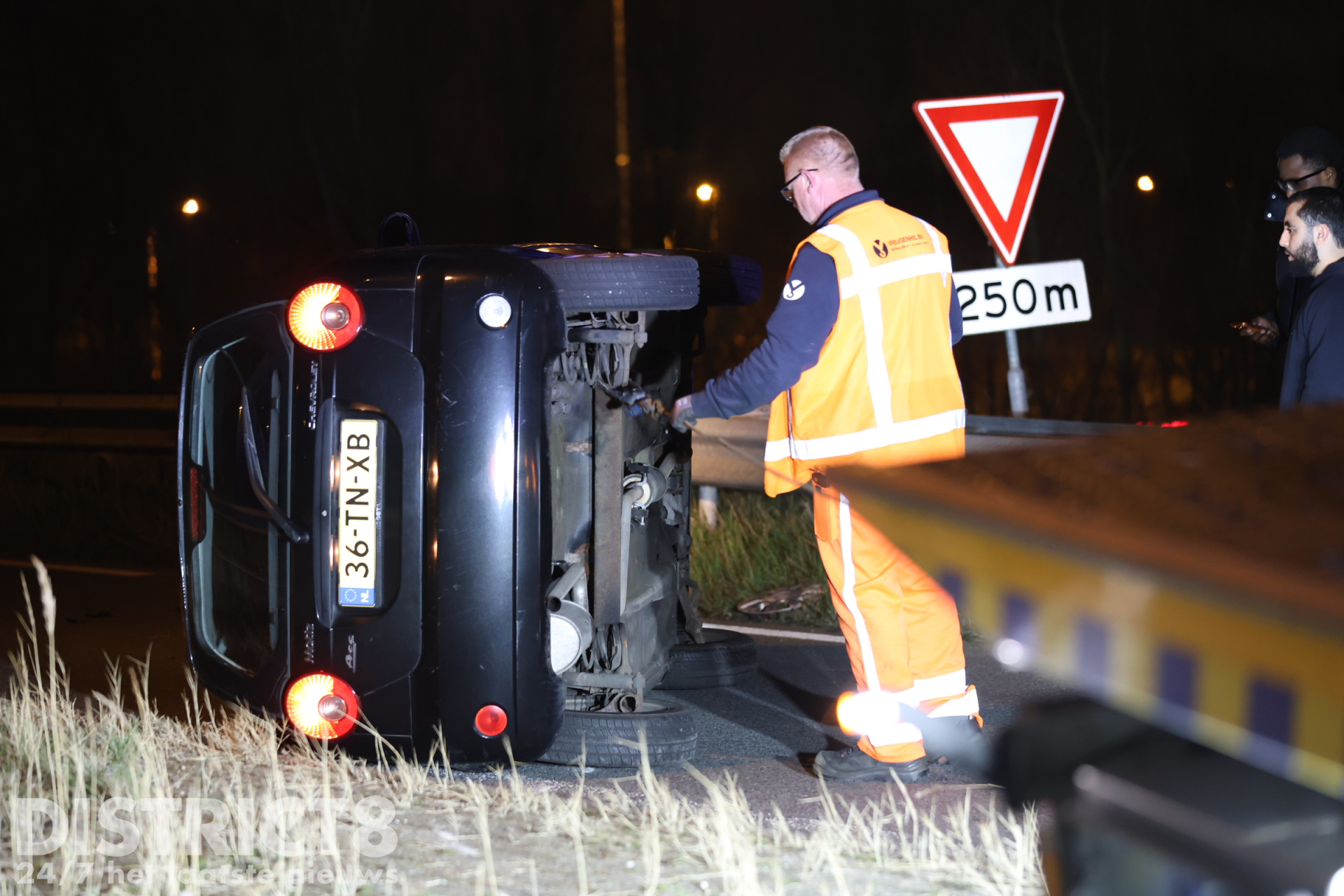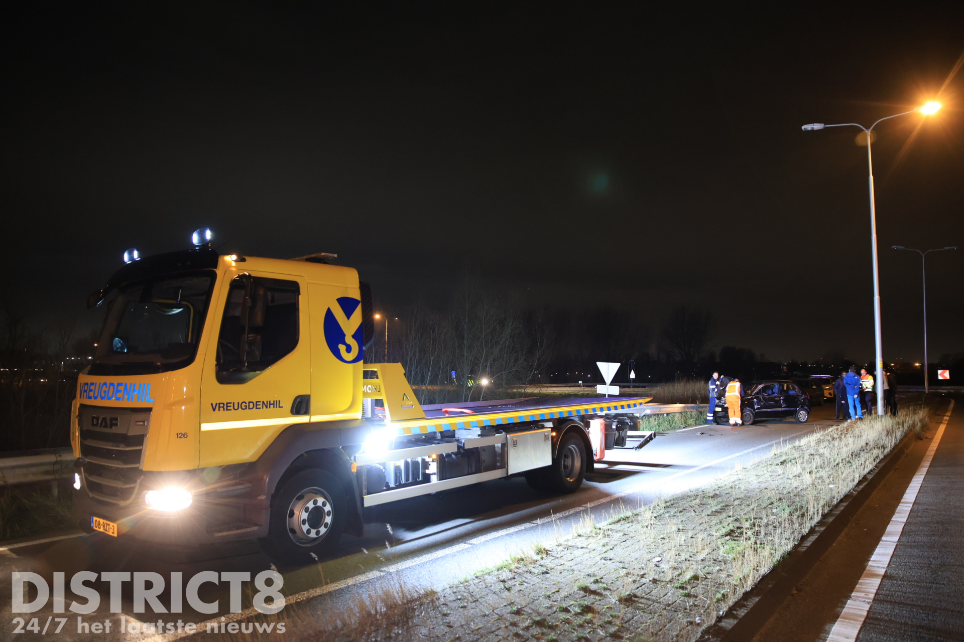 Schipluiden – Op de afrit van de A4 bij de N470 in Schipluiden is maandagavond 16 maart een auto uit de bocht gevlogen. Het voertuig raakte eerst een lantaarnpaal en kwam vervolgens op zijn kant tot stilstand. De afrit werd direct afgesloten na het incident.