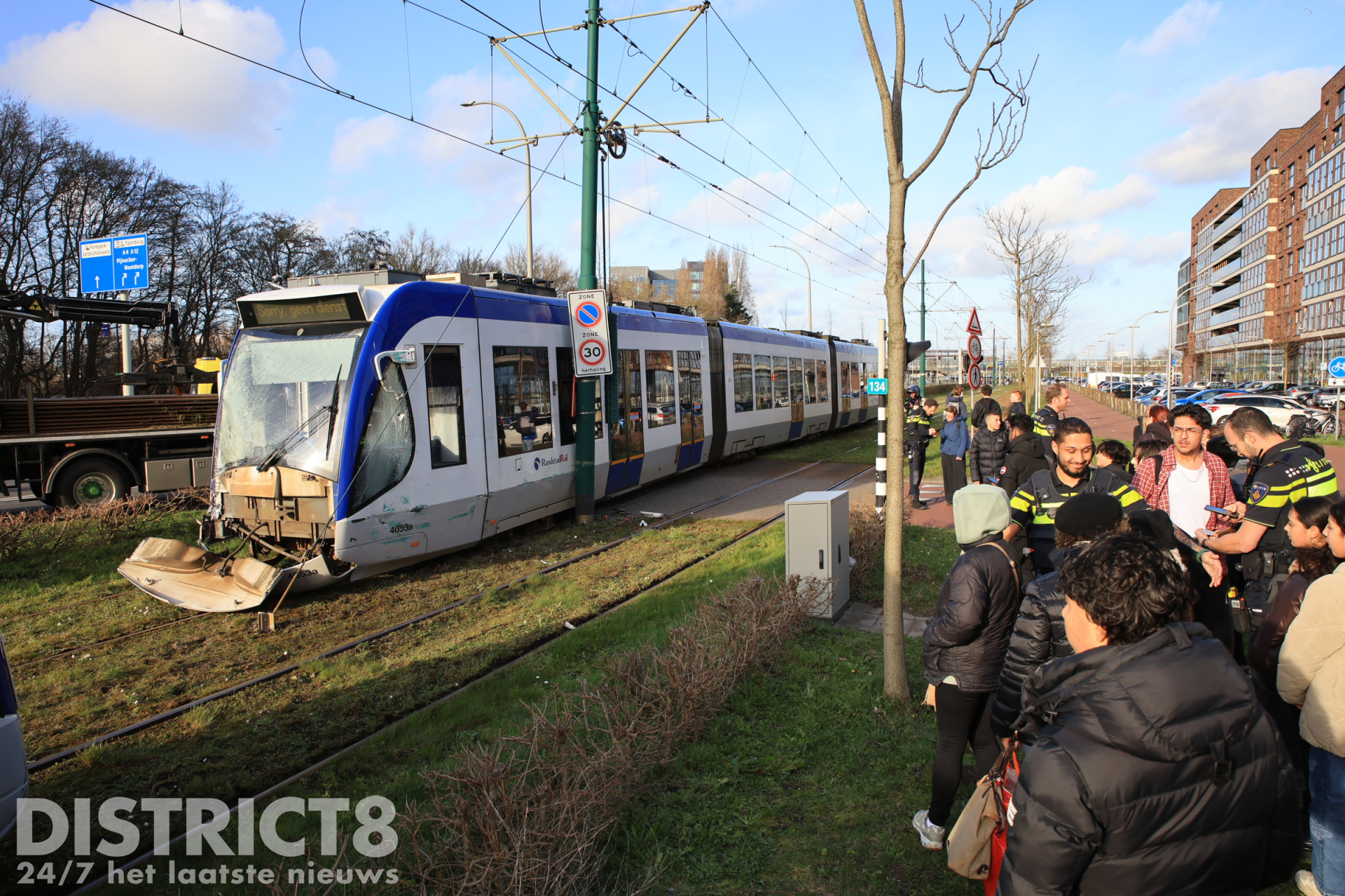 Home BREAKING Tram ontspoord na flinke aanrijding met vrachtwagen Fluitschiplaan Den Haag