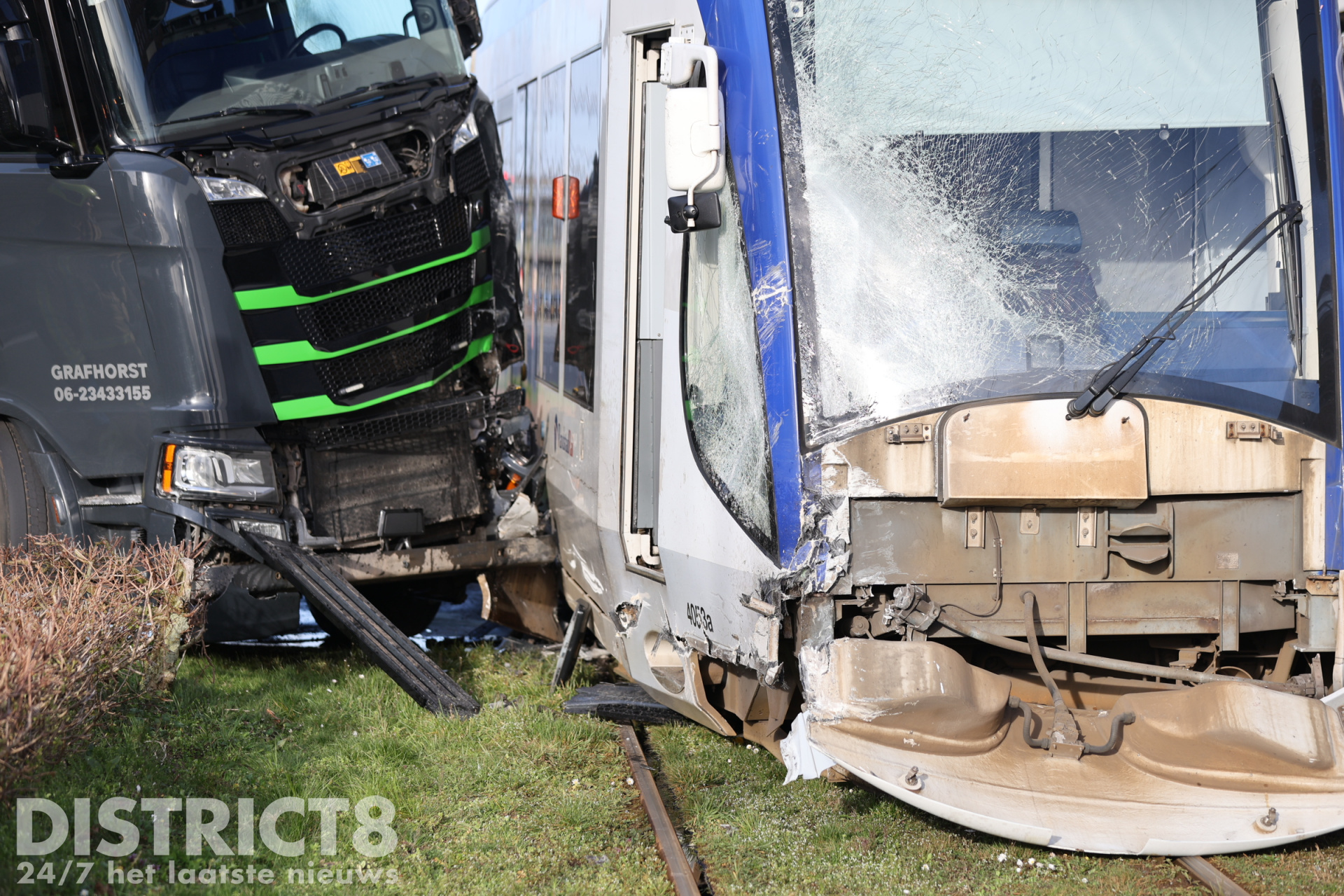 Door de klap is de tram ontspoord. Zowel de vrachtwagen als de tram hebben flinke schade opgelopen bij het ongeval. Na de ontsporing is de tram tegen een bovenleidingsmast aangekomen.