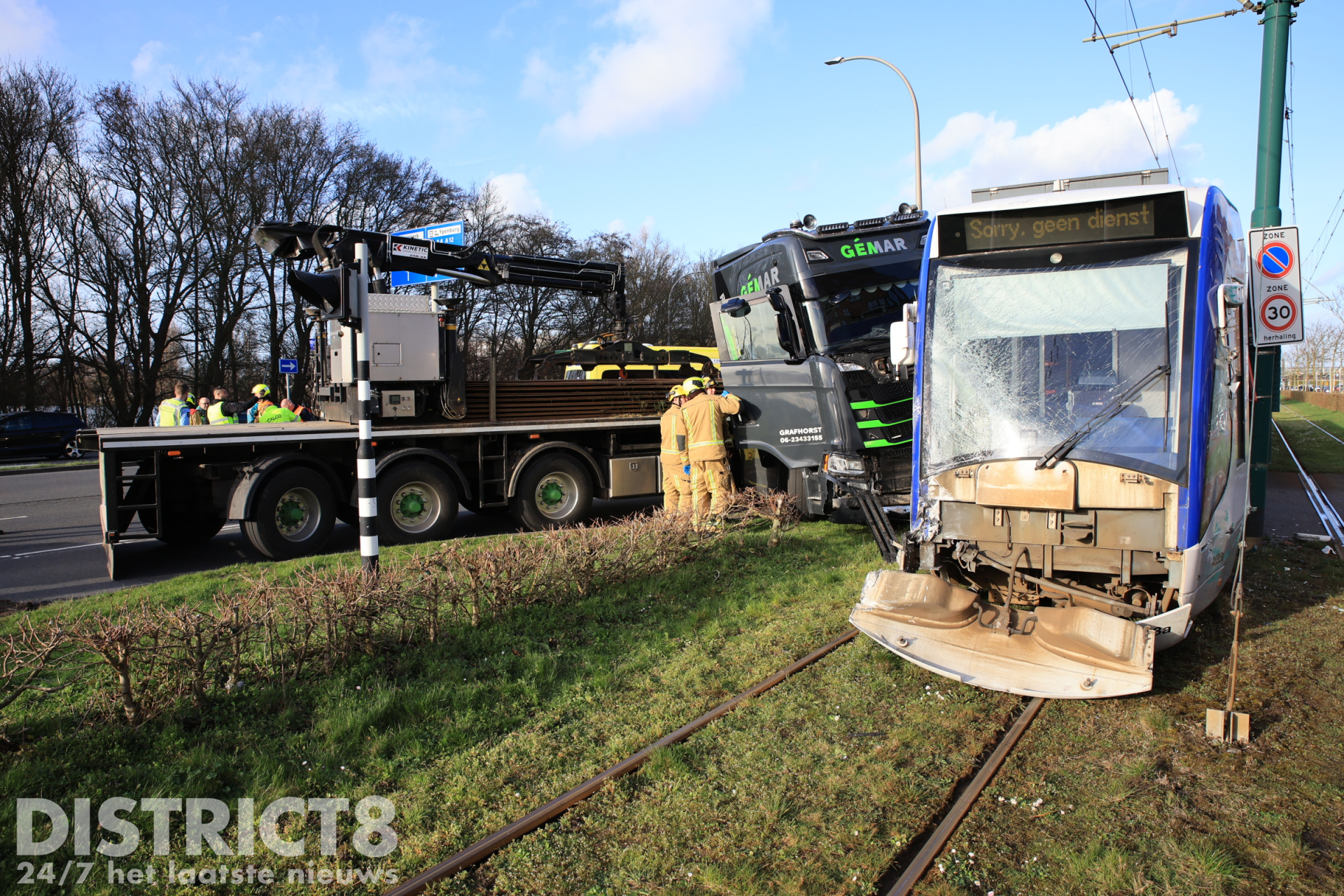 Tram ontspoord na flinke aanrijding met vrachtwagen Fluitschiplaan Den Haag