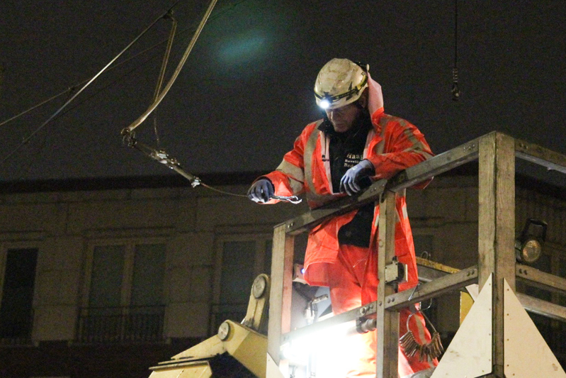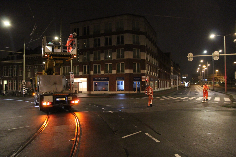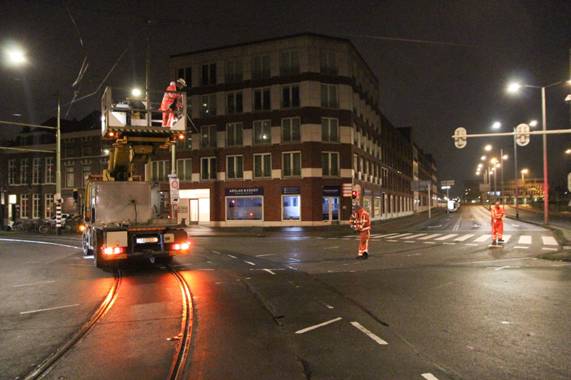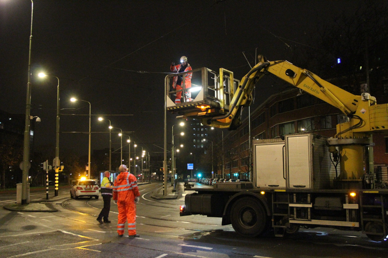 Monteurs waren de bovenleiding aan het repareren en tijdens de reparatie hoorden zij geknetter en zagen ze een lichtflits. Direct hebben zij de werkzaamheden stilgelegd.