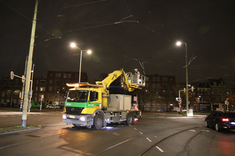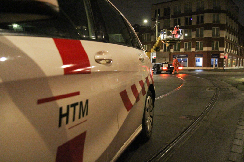 Den Haag – Tijdens werkzaamheden aan de bovenleiding aan de Lijnbaan in Den Haag is er een onderdeel van de bovenleiding doorgebrand.