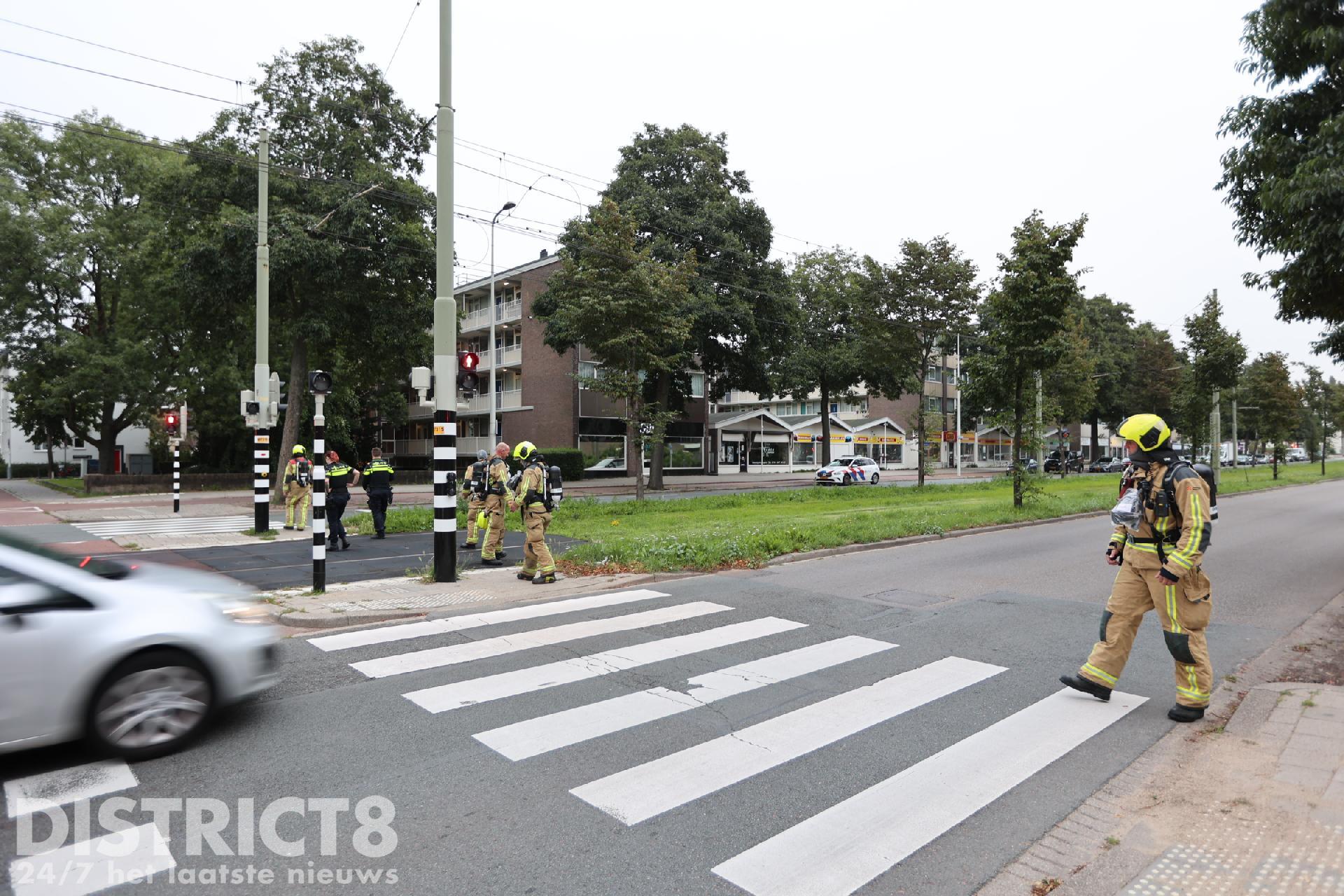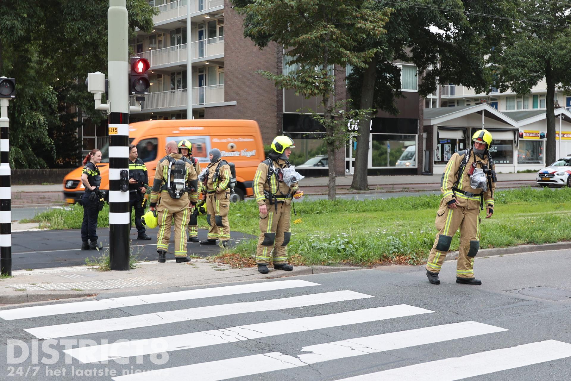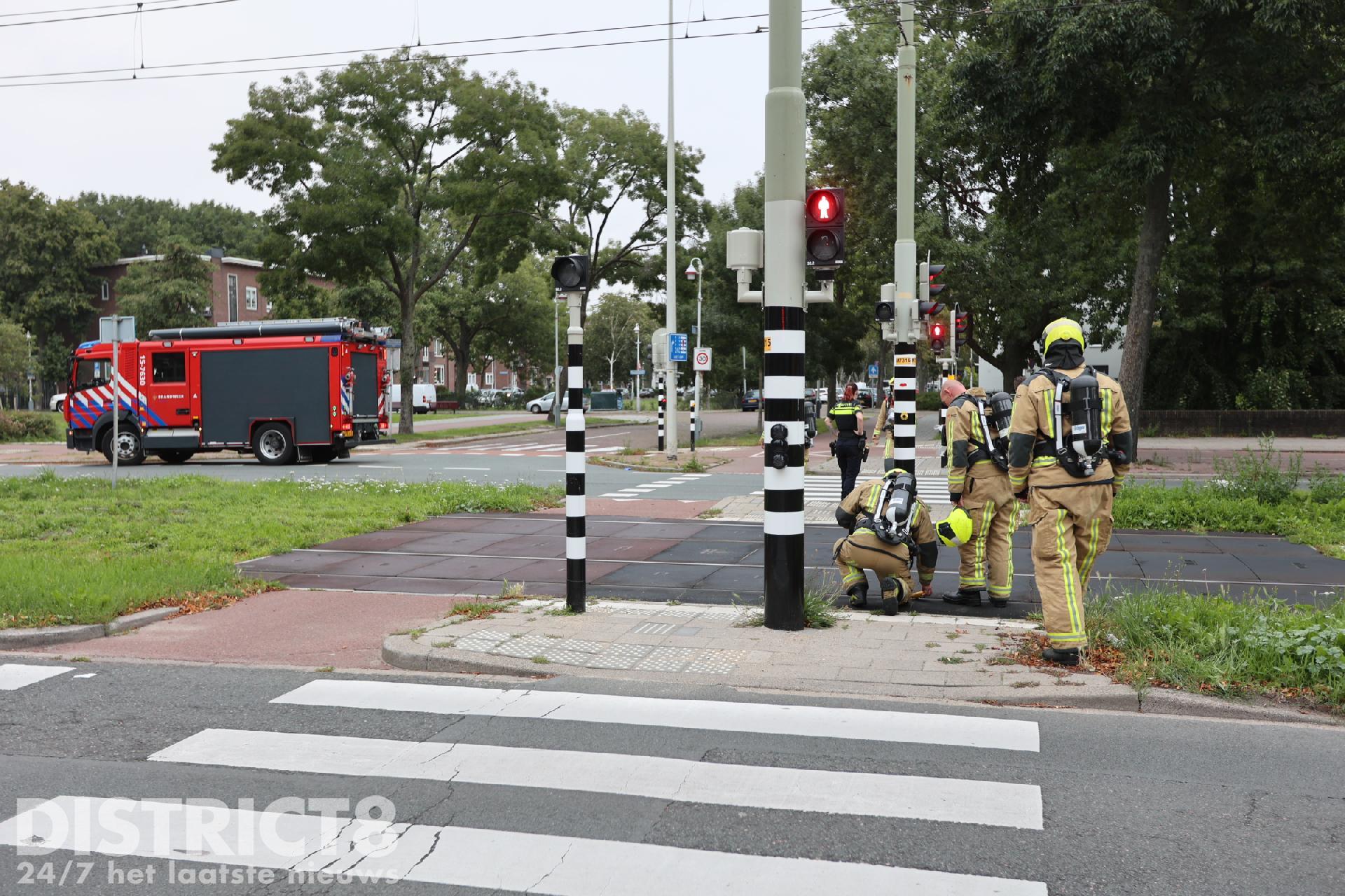 Op de kruising werd een sterke gaslucht waargenomen. Daarop is besloten tramlijn 16 van HTM tijdelijk om te laten rijden.
