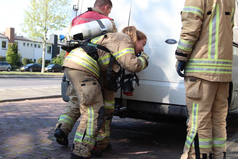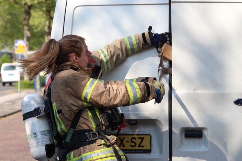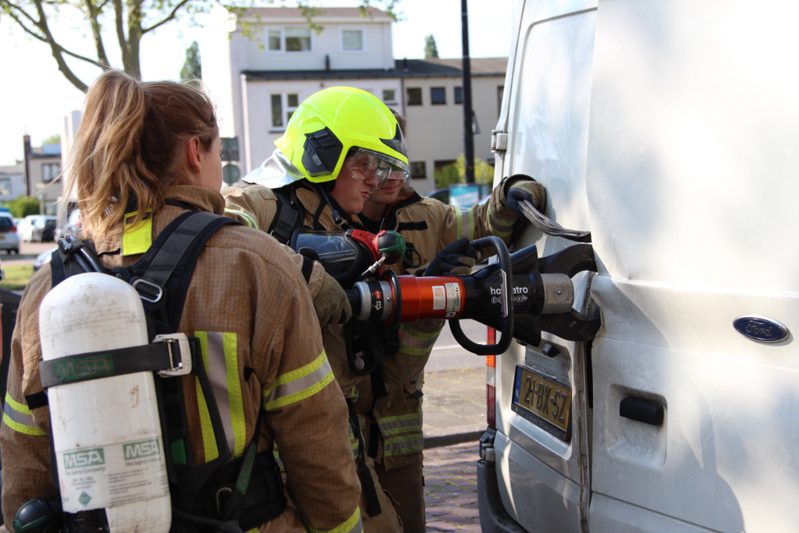 Na een eerste poging met een breekijzer is een hydraulische schaar ingezet. In de laadbak bleek een kleine hoeveelheid brandstof aanwezig te zijn wat is gaan lekken.