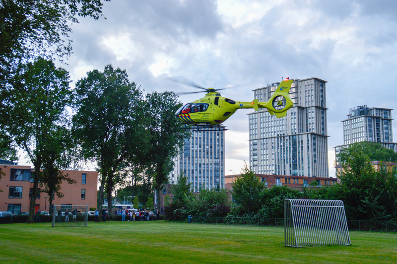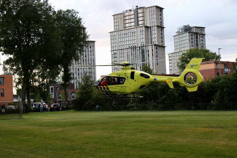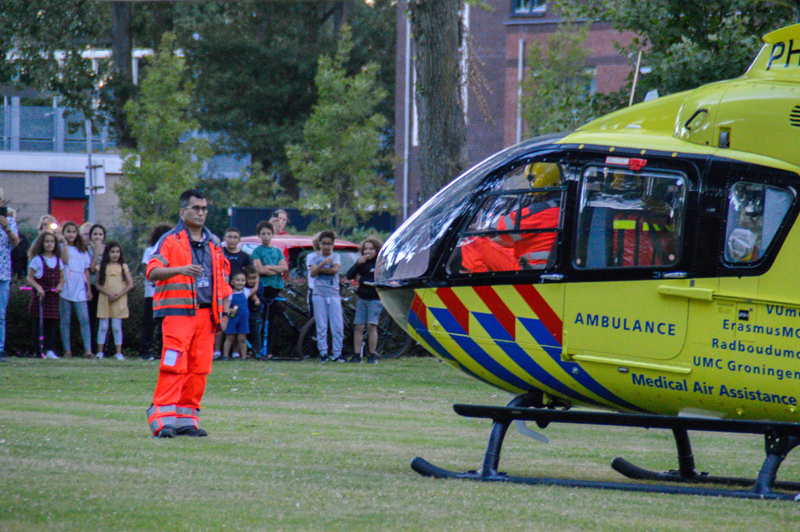 Het slachtoffer is met spoed overgebracht naar het ziekenhuis. Wat er precies is gebeurd kan de woordvoerster van de Politie niet vertellen. Het opstijgen van de helikopter trok veel bekijks van omwonenden.