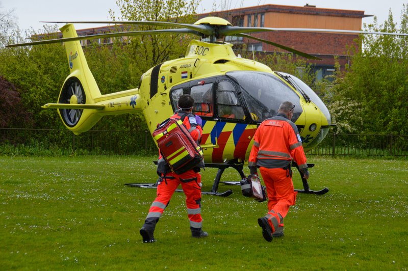 Een persoon had dringend medische hulp nodig waarvoor het traumateam werd ingeschakeld. De traumahelikopter landde op het voetbalveldje van de Korhoenstraat.