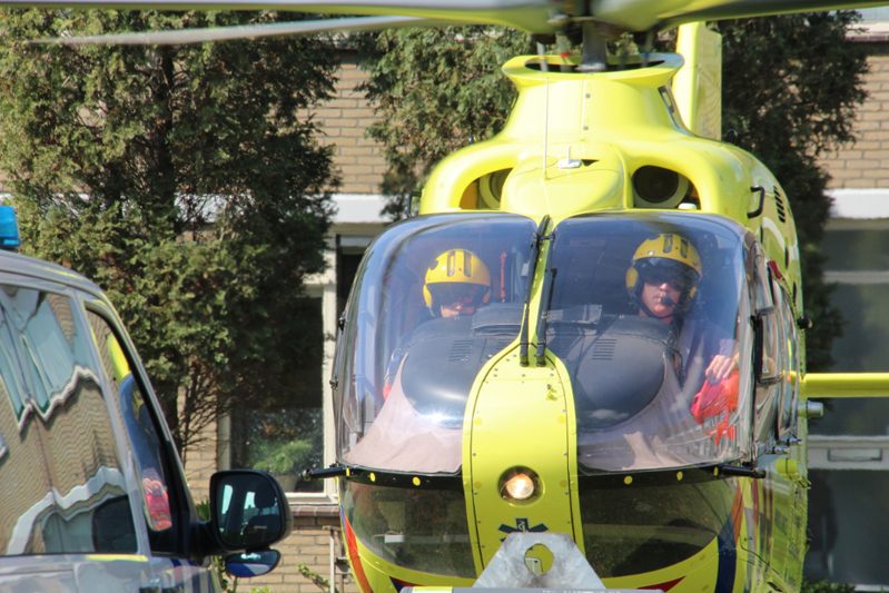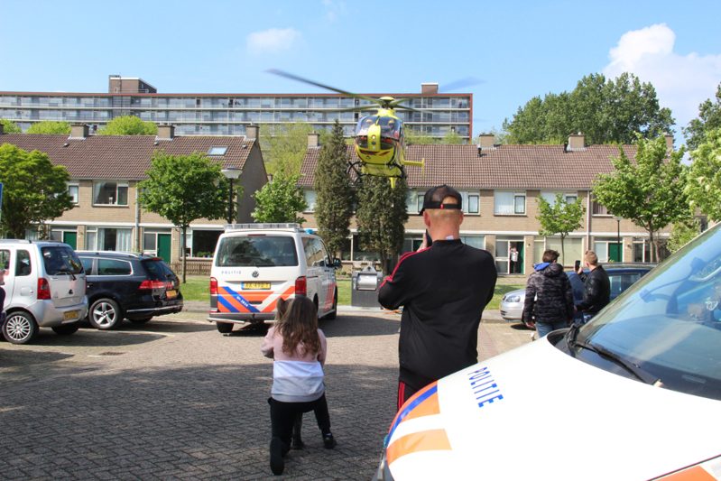 Op straat had iemand dringend medische hulp nodig. Personeel van de ambulance en de traumahelikopter verleenden medische assistentie. De piloot van de traumahelikopter landde zijn toestel op een smal grasveldje tussen de woningen in.