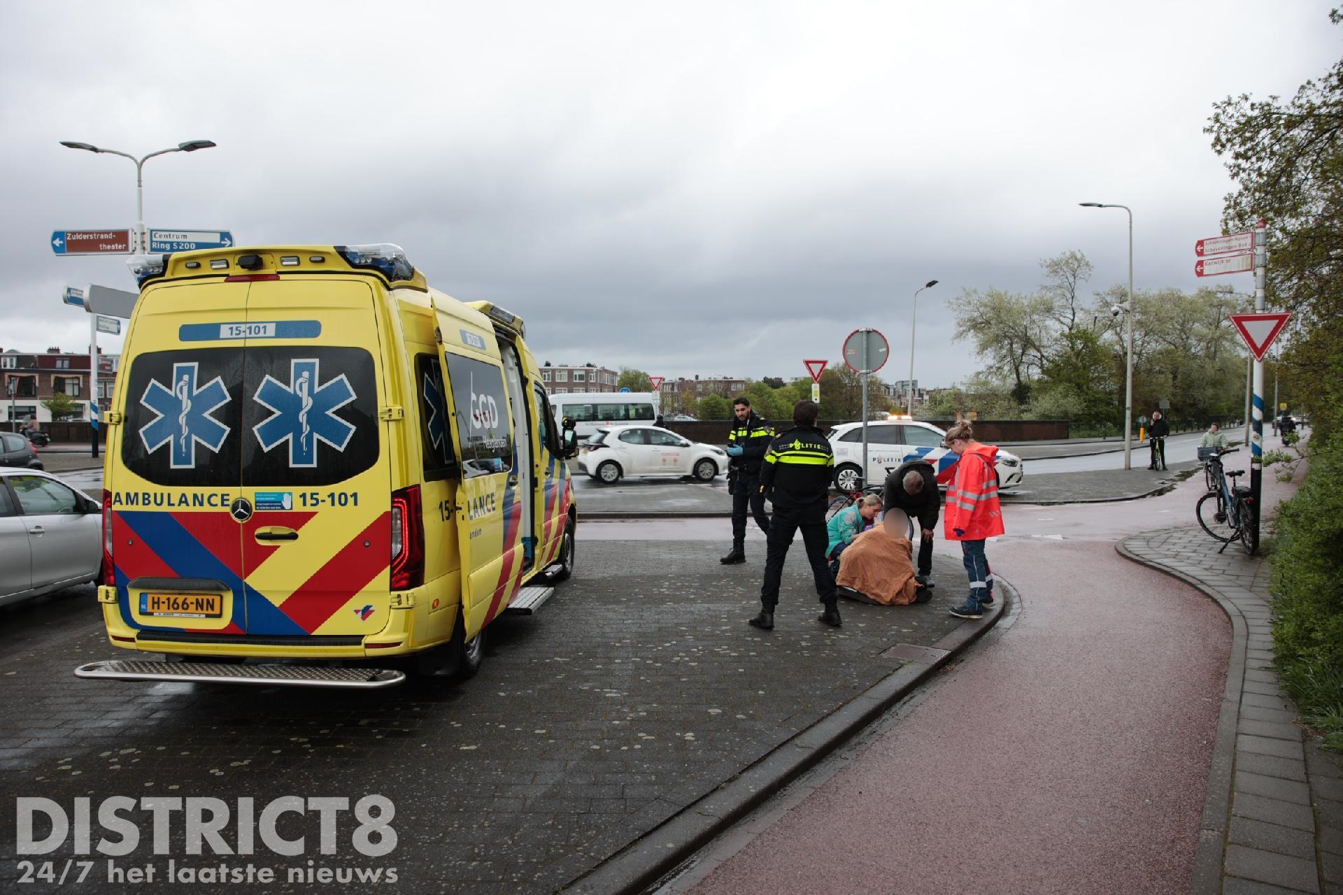 De ambulancebroeders hebben de gevallen fietser opgevangen. Hij is lopend de ambulance ingegaan voor verder onderzoek.