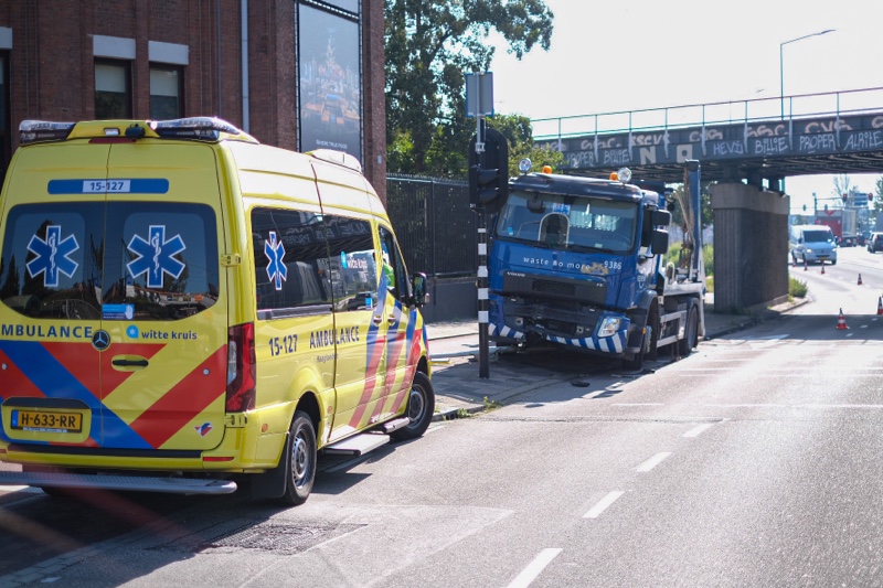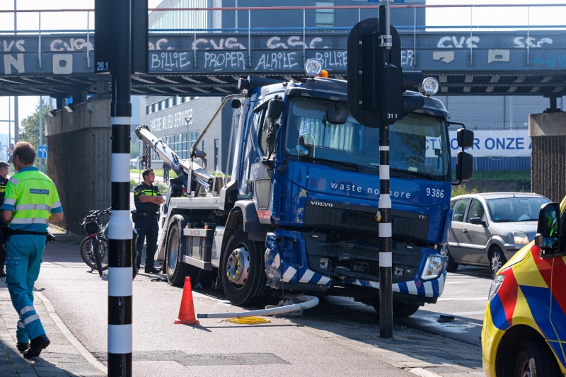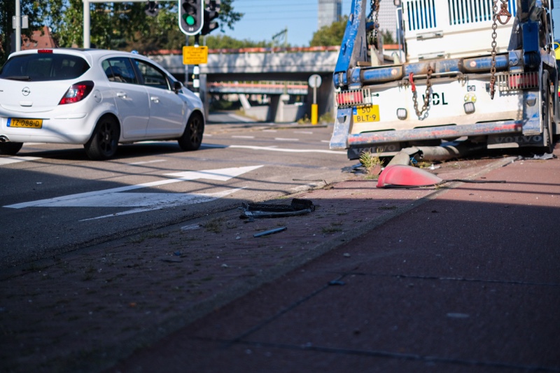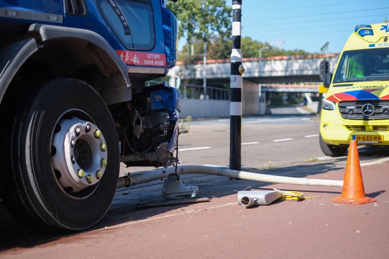 Den Haag – Op de Binckhorstlaan in Den Haag is dinsdagochtend 22 september een vrachtwagen tegen een viaduct aangereden. Na het ongeval, schoot de vrachtwagen van de weg en ramde een lantaarnpaal.