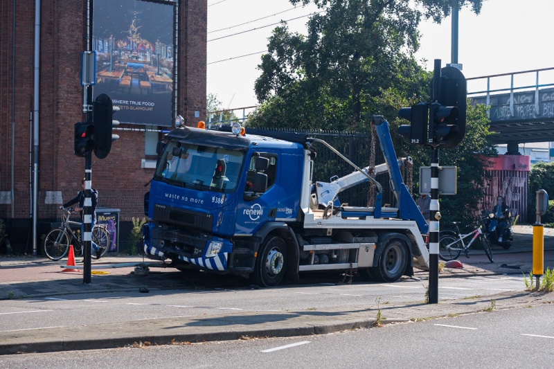 Volgens getuigen was de bestuurder van de Renewi vrachtwagen vergeten de haakarmen van de vrachtwagen omlaag te doen.