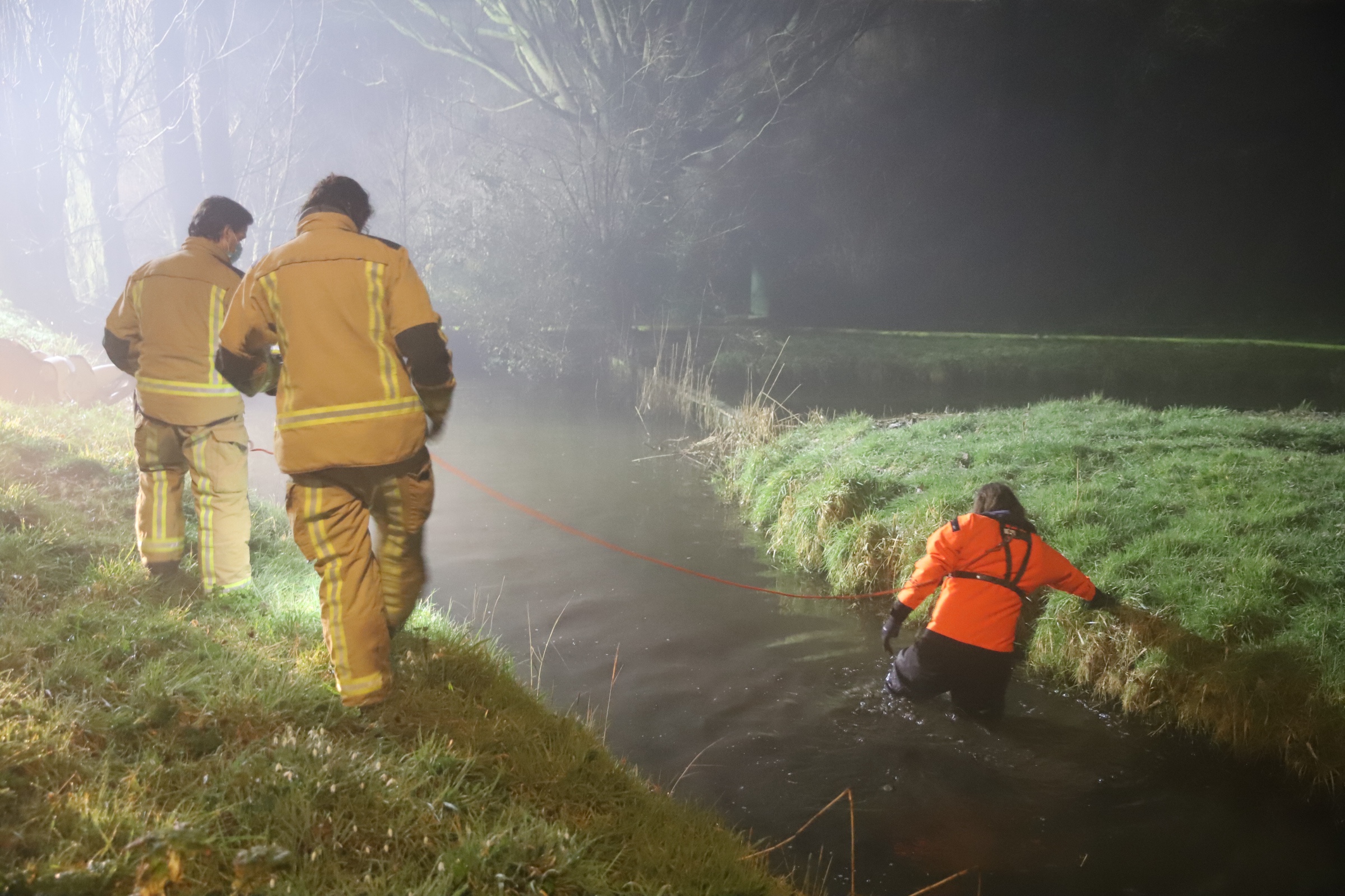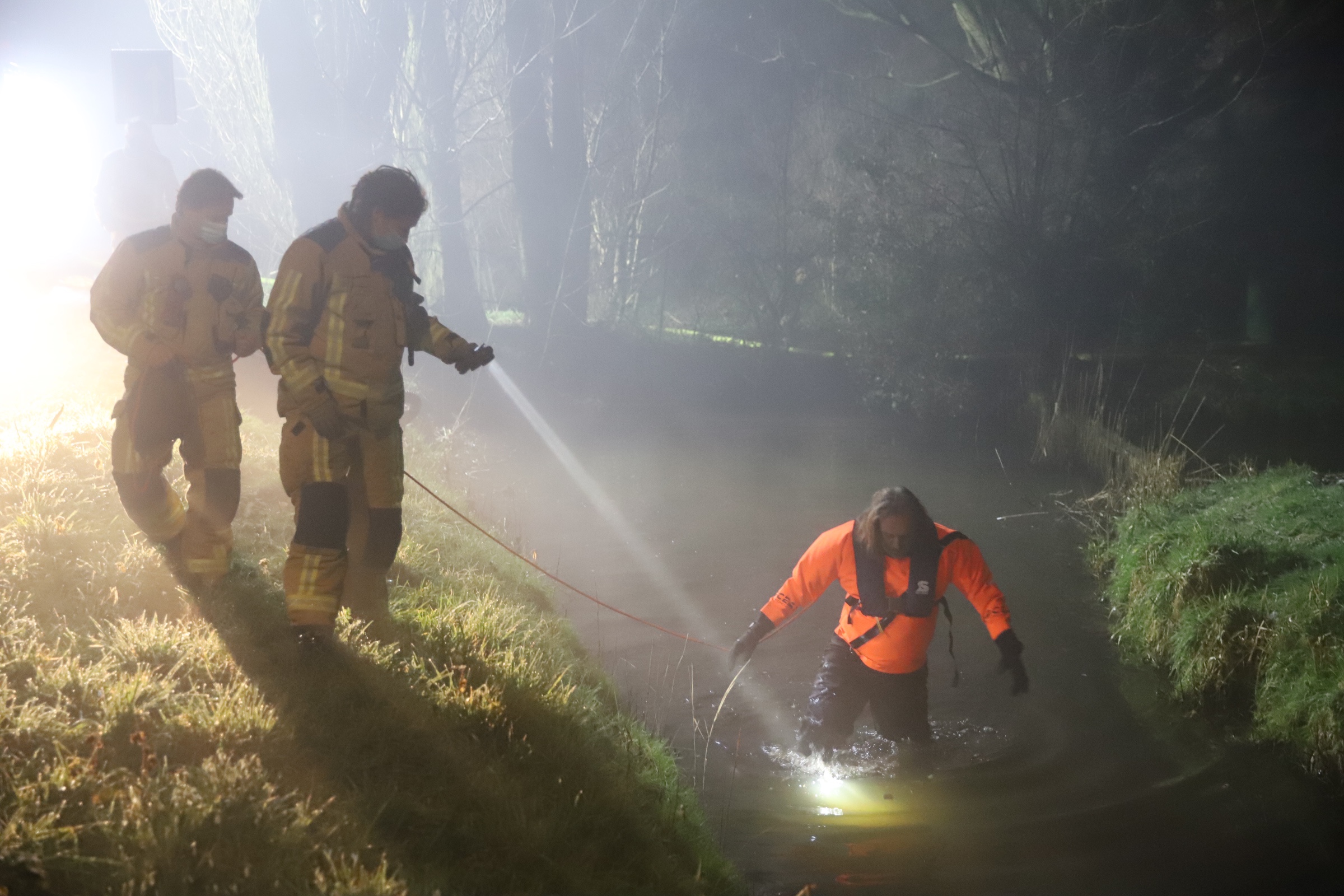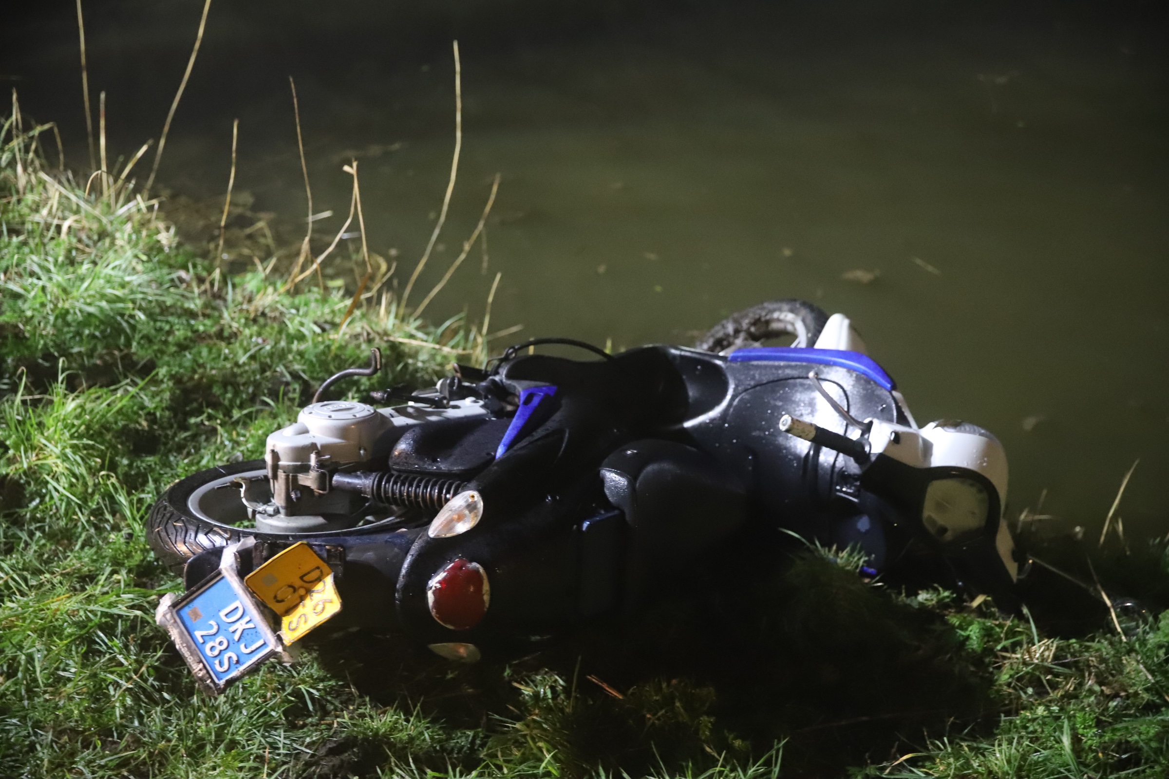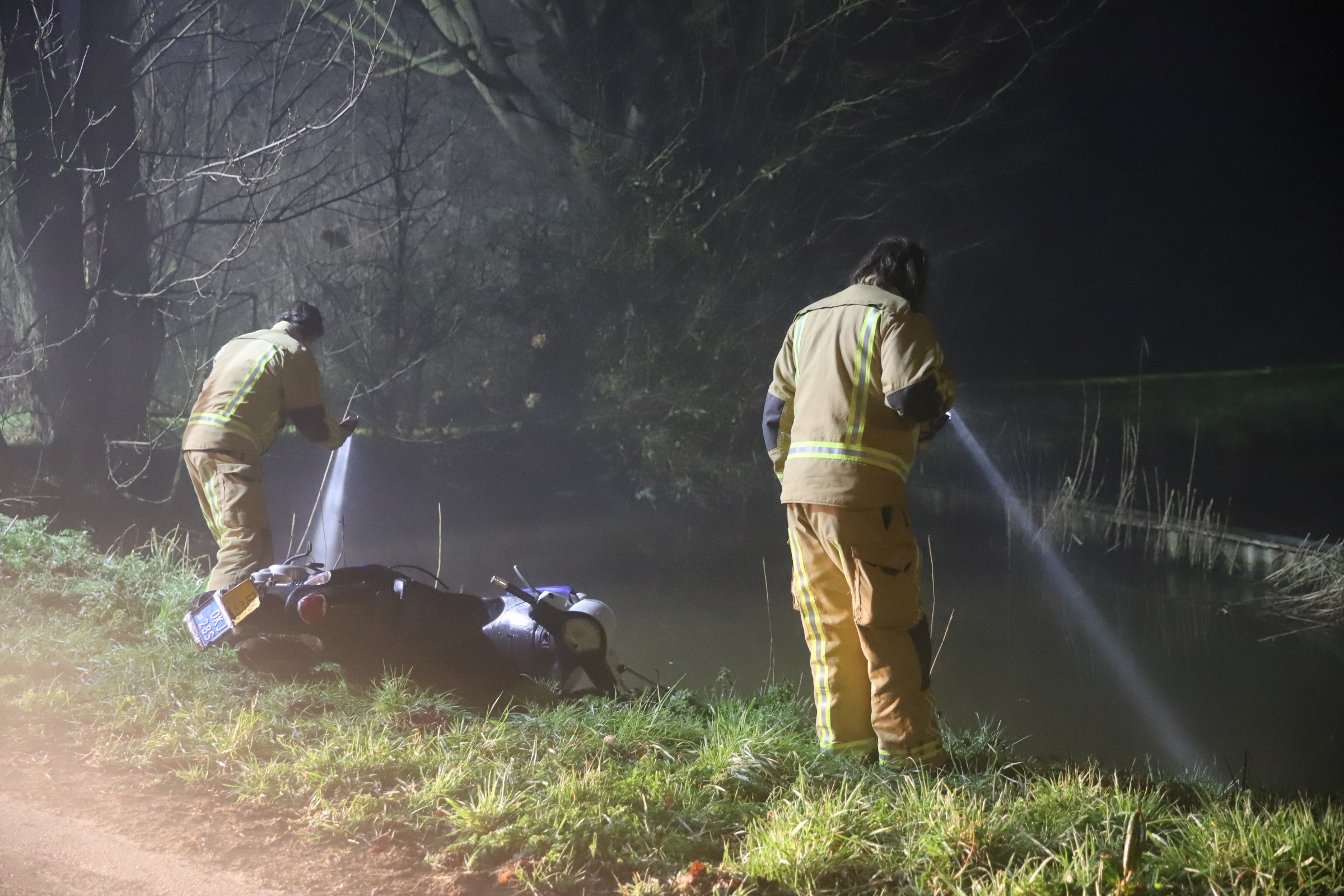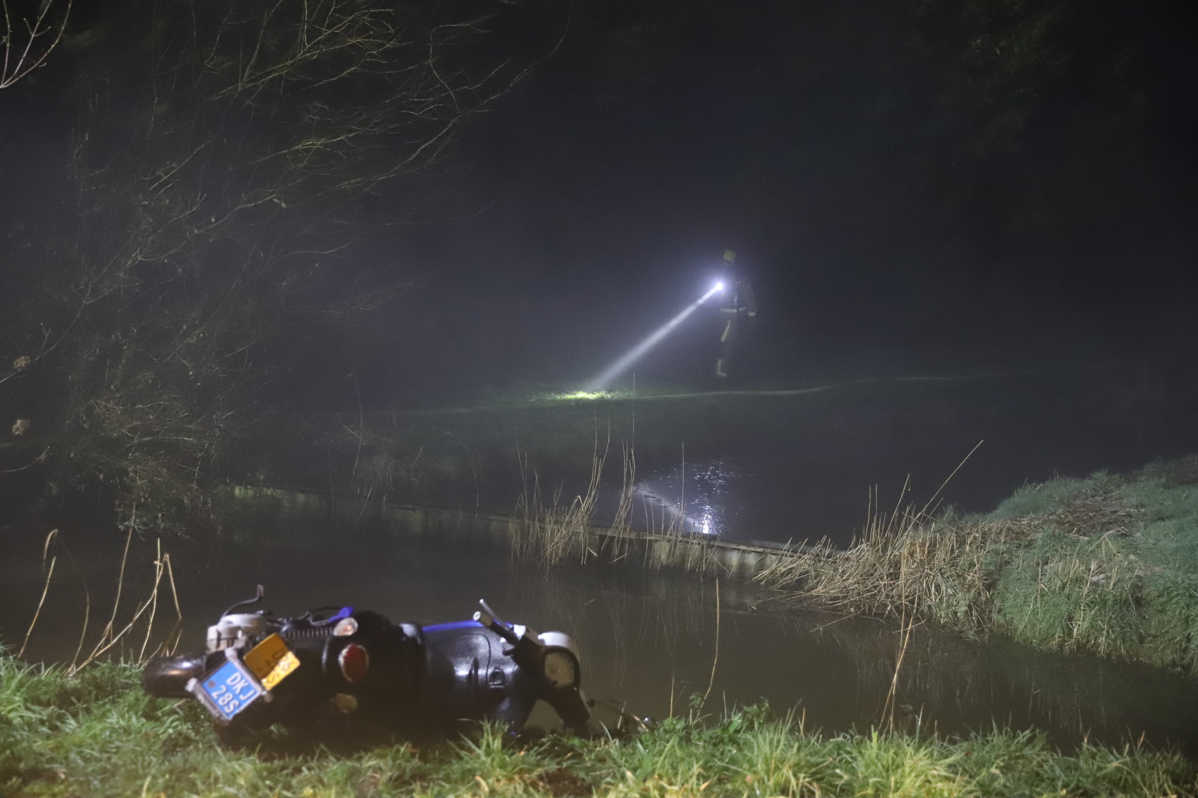 Langs de weg werd ook een scooter aangetroffen. Om uit te sluiten dat er iemand in het water lag zocht de brandweer in de sloot.